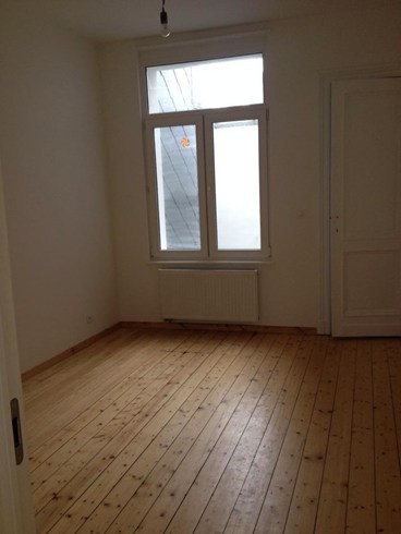 Volledig gerenoveerd appartement op 2 de verdieping, bestaande uit: Woonkamer op planché met 3 grote ramen, aangrenzend aan de slaapkamer . Daarachter gesloten keuken (Keramische kookplaat, geen vaatwasmachine en frigo) en daarachter badkamer met enkele lavabo, douche + hang WC en aansluiting wasmachine. Landelijke stijl. 1 slaapkamer. Overal dubbel glas + CV verwarming op aardgas. Aparte meters gas en elektriciteit en water. Goed geïsoleerd. Appartement voor 1 persoon. EPC 164 kwh/m² code 20160710-0001877991-1
