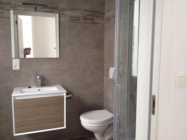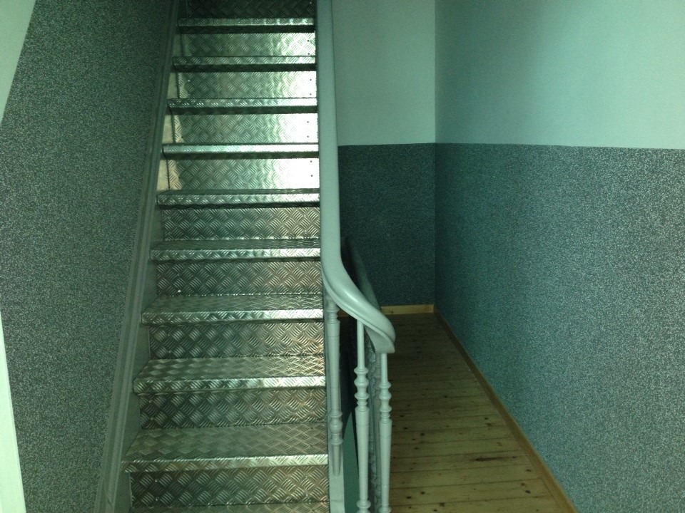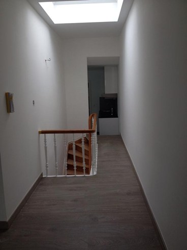 Volledig gerenoveerd appartement op 3 de verdieping. Je komt binnen met de mooi gerestaureerde trap naar boven die eindigt aan overloopje tussen woonkamer met 3 grote ramen, aangrenzend aan de slaapkamer . Aan de achterkant heb je een gesloten keuken (Keramische kookplaat, geen vaatwasmachine en frigo) en daarachter badkamer met enkele lavabo, douche + hang WC en aansluiting wasmachine. Landelijke stijl. Overal dubbel glas + CV verwarming op aardgas. Aparte meters gas en elektriciteit en water. Dak en achtergevel goed geïsoleerd. Appartement voor 1 persoon. EPC 181 kwh/m²