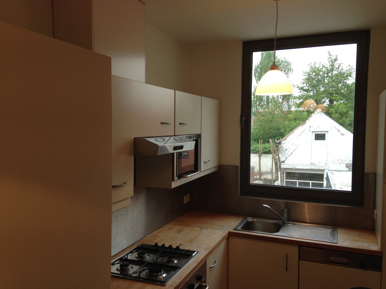 Zeer centraal gelegen instapklaar appartement op de 1ste verdieping met bestaande uit: traphal, volledig ingerichte keuken met vaatwasser, 1 slaapkamer, badkamer. In de berging/zolder is aansluiting voorzien voor wasmachine/droogkast. Alles is pas netjes opgeschilderd en in alle kamers zijn nieuwe verlichtingsarmaturen geplaatst. 75 euro maandelijkse kosten ( gas en water). EPC 190 kWh/m².