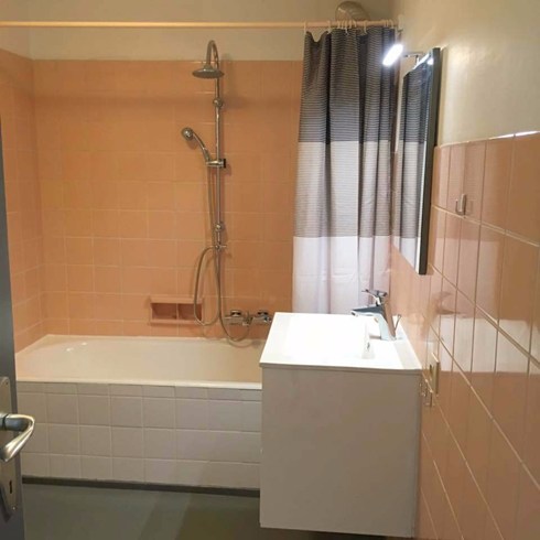 Recent gerenoveerd appartement met lift, 3 slaapkamers + 2 kelderruimten (privatief) op 3e verdiep. Bestaande uit: Inkomhal met vestiaire (inbouwkast), grote leefruimte op parket, keuken op epoxy gietvloer voorzien van inductievuur, oven, vaatwasmachine, koelkast en aansluiting voor wasmachine/droogkast. Badkamer op epoxy gietvloer met ligbad en lavabomeubel, 3 slaapkamers op laminaat, 2 terrassen (voor & achter). . Extra: 50 euro maandelijkse kosten. Alle nutsvoorzieningen met eigen meters. EPC 168 kWh/m².