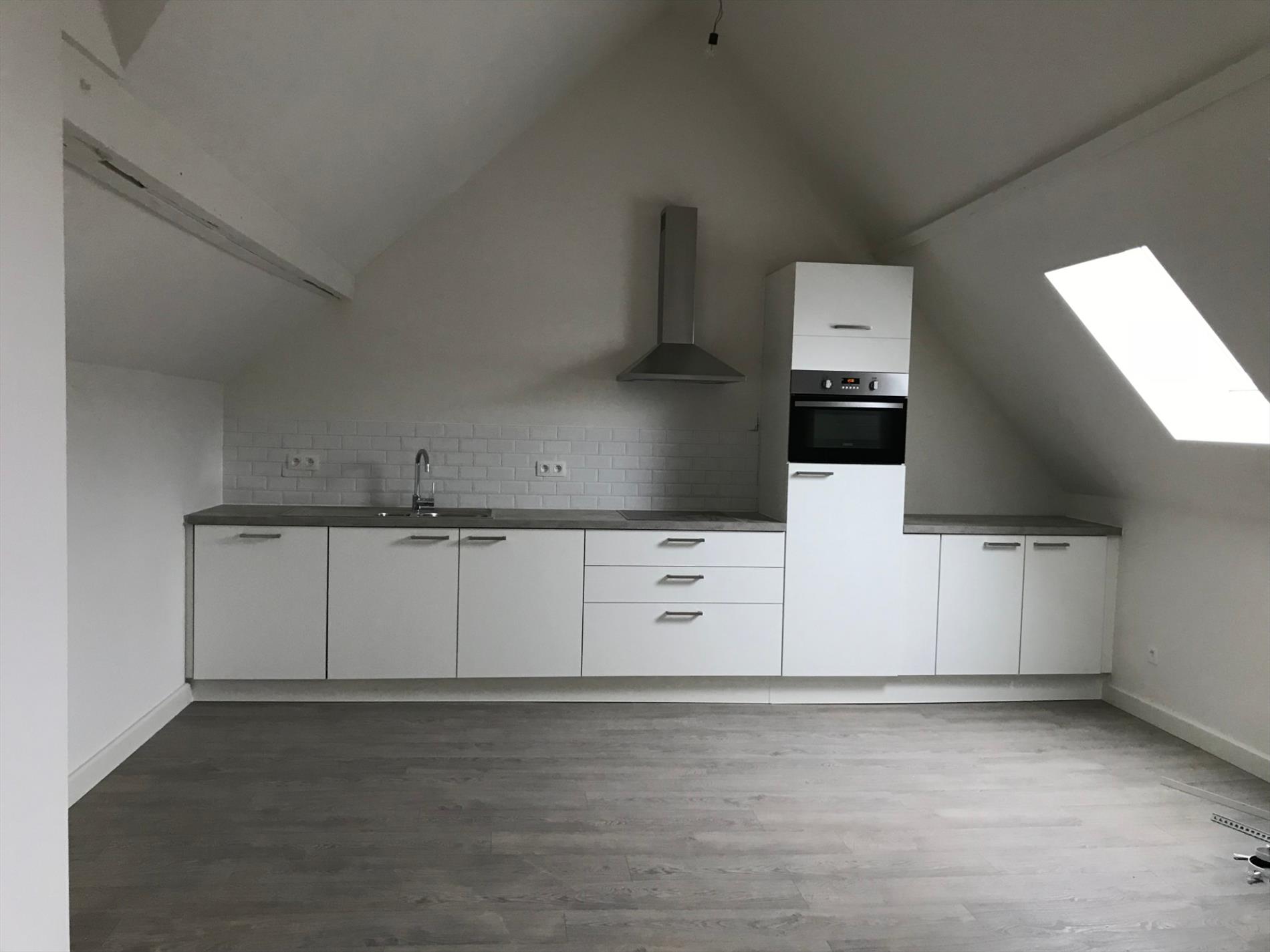 Tof dakappartement van +/- 78m² gelegen op 3de verdieping. Inkomhall met vestiaireruimte. Living laminaat met open ingerichte keuken (met kookvuur, dampkap, koelkast, dubbele spoeltafel en vaatwasmachine). Slaapkamer en dressing op laminaat met dakraam. Badkamer met inloopdouche, lavabo in meubel en aansluiting voor wasmachine. Nieuwe veluxramen. GEEN LIFT, NOCH TERRAS AANWEZIG. EPC: 236 kWh/m².