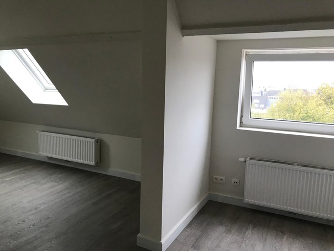 Tof dakappartement van +/- 78m² gelegen op 3de verdieping. Inkomhall met vestiaireruimte. Living laminaat met open ingerichte keuken (met kookvuur, dampkap, koelkast, dubbele spoeltafel en vaatwasmachine). Slaapkamer en dressing op laminaat met dakraam. Badkamer met inloopdouche, lavabo in meubel en aansluiting voor wasmachine. Nieuwe veluxramen. GEEN LIFT, NOCH TERRAS AANWEZIG. EPC: 236 kWh/m².