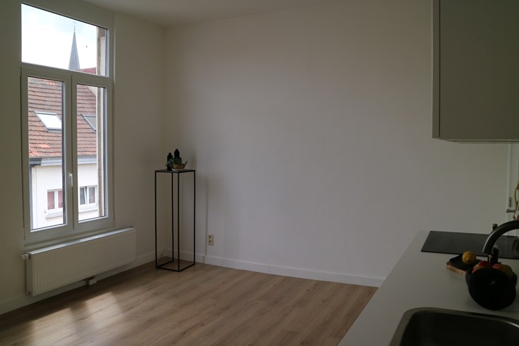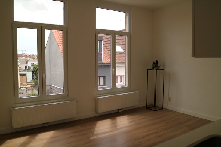 Deze studio op de tweede verdieping is niet groot, nl 30 m², maar beschikt over een lichtrijke slaap - en leefruimte, alsook een keuken en aparte badkamer.