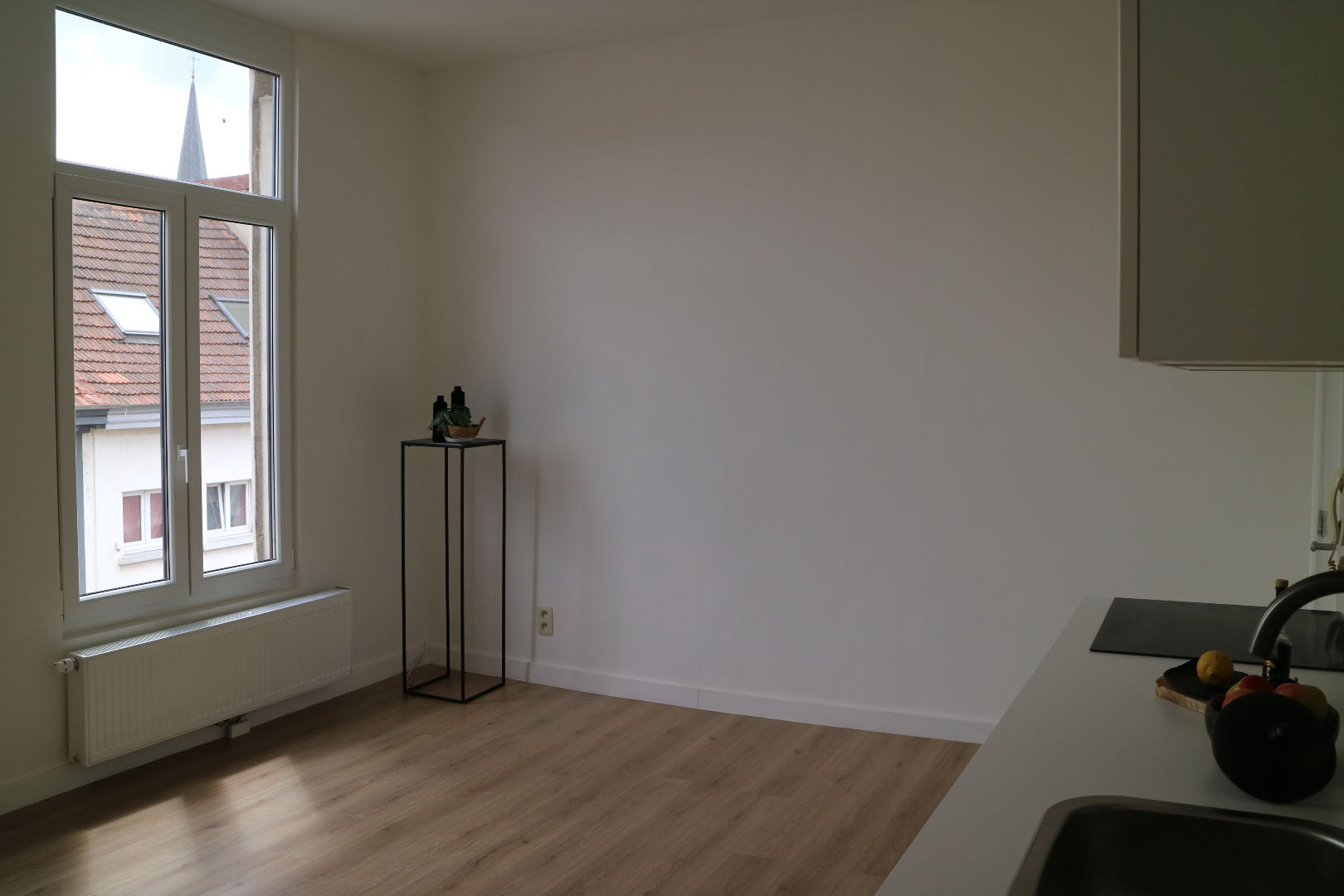 Heerlijk als je alleen woont om hier een gezellige thuis van te maken. Alles is vernieuwd : laminaat op de vloer , nieuw keukenblok met oven, dampkap en keramische kookplaat in de leefruimte. Er is een aparte slaapkamer aangrenzend aan de douche en toilet Alles is helemaal nieuw alsook de lavabo. Het appartement is ook geschilderd, dus het enige wat je moet doen is je meubeltjes binnen zetten en het gezellig maken. Voor buitenactiviteiten zal je op cafè of resto moeten even verderop in Borgerhout, want er is helaas geen tuin of terrasje.