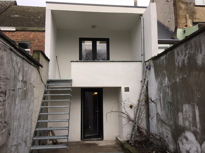Deze volledig gerenoveerde woning ligt in een rustige straat in de tofste wijk van 't stad. Je loopt buiten en je wandelt op de vernieuwde Vesten . School, winkels, bank,….alles binnen 300 meter. Het huis bestaat uit een dubbele garage, woonkamer op eerste verdieping met open geïnstalleerde keuken, voorzien van vaatwasser, frigo en keramisch kookvuur. 1 slaapkamer en 1 babykamer en/of bureau op de 2° verdieping, samen met badkamer met douche, enkele lavabo . S' zomers zit je gezellig buiten in de tuin. EPC 111 kWh/m².