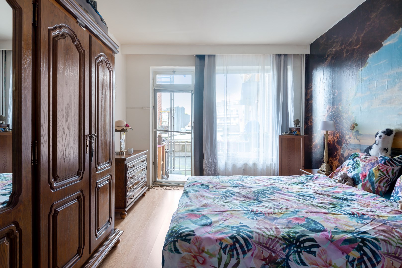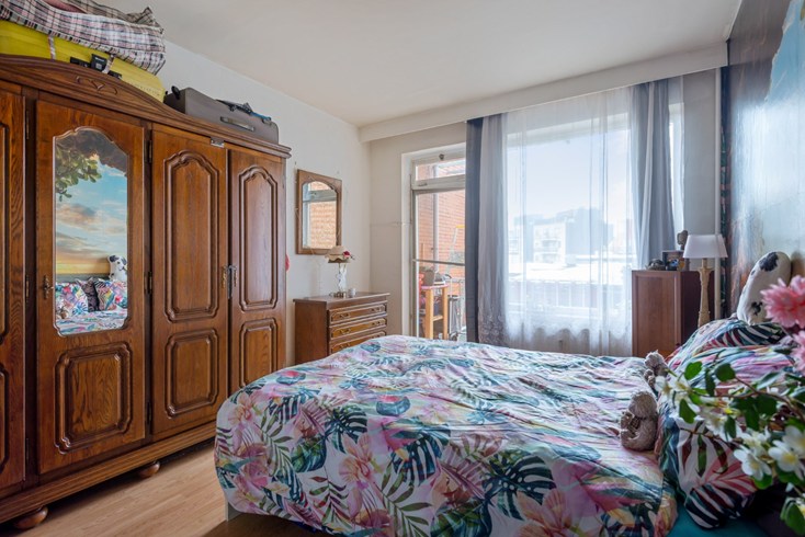 Eén grote slaapkamer (15m²) met deur naar het ruime terras.