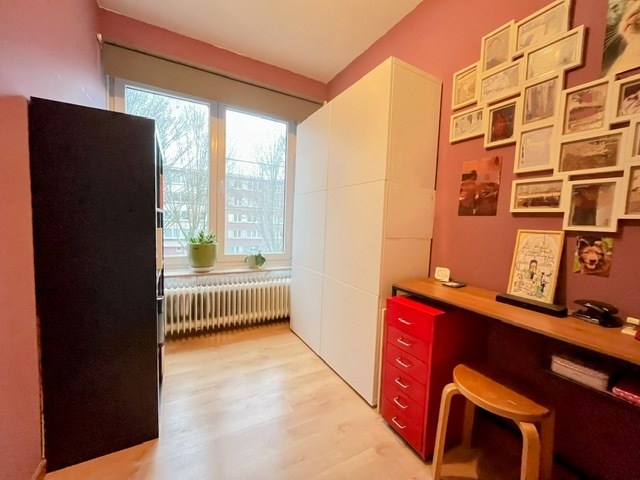 Het appartement, dat gelegen is op niveau twee, is voorzien van een lichte en ruime woonkamer, een volledig uitgeruste aparte keuken ( nieuw sinds 2018) en een badkamer met douche en toilet. Er zijn 2 slaapkamers , een masterbedroom en een kleinere kamer ( eventueel voor een bureau ). Daarnaast beschikt het appartement over een uitzicht op de Boekenberglei.