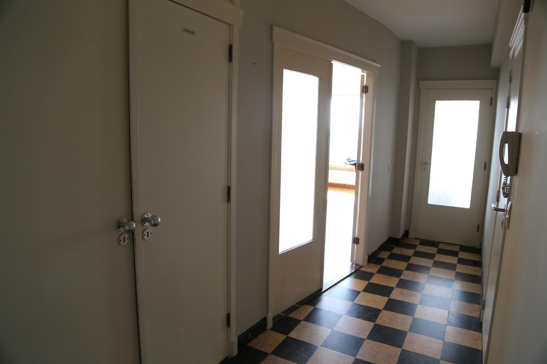 De hall heeft een ruime vestiaire/bergkast. Hier zijn de originele, marmeren vloertegels behouden. Heel charmant !