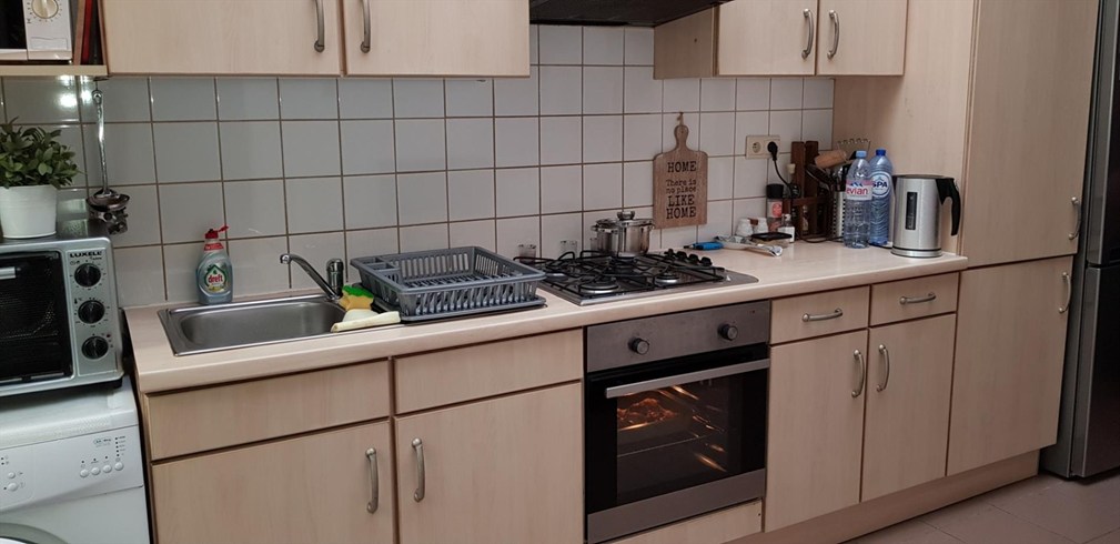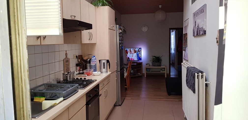 Een leefruimte ( 20m²) met open keuken (8.5m²)
