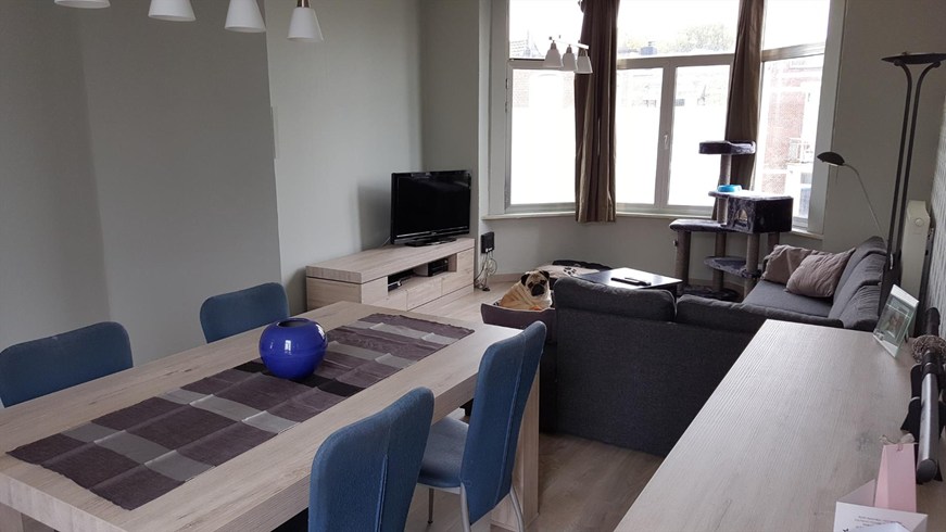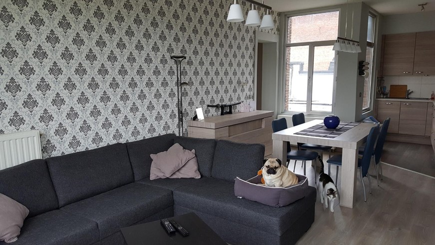Appartement met 1 slaapkamer op de tweede verdieping met bewoonbare oppervlakte van 51m². Indeling: Leefruimte op laminaat (31m²). Nieuwe open keuken op laminaat (voorzien van een vaatwasser, koelkast, elektrische kookplaat, oven, dampkap en wastafel). Nieuwe badkamer op tegels (voorzien van een inloopdouche, lavabomeubel met wastafel en wc). 1 slaapkamer op laminaat. Nieuwe ketel! GEEN lift aanwezig. EPC: 375 kWh/m²