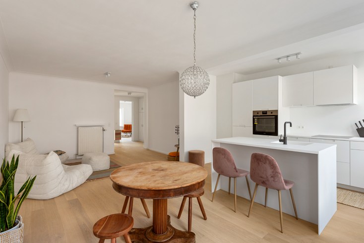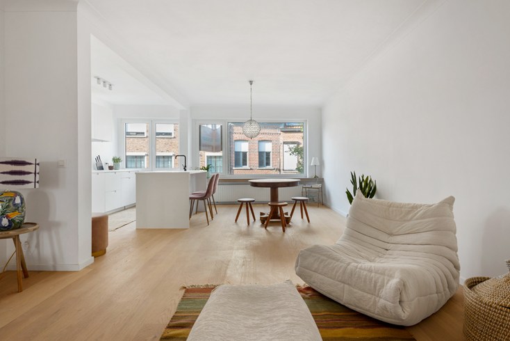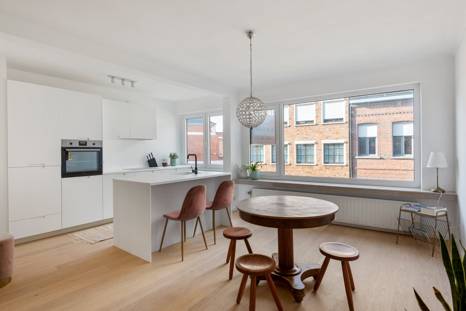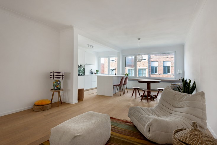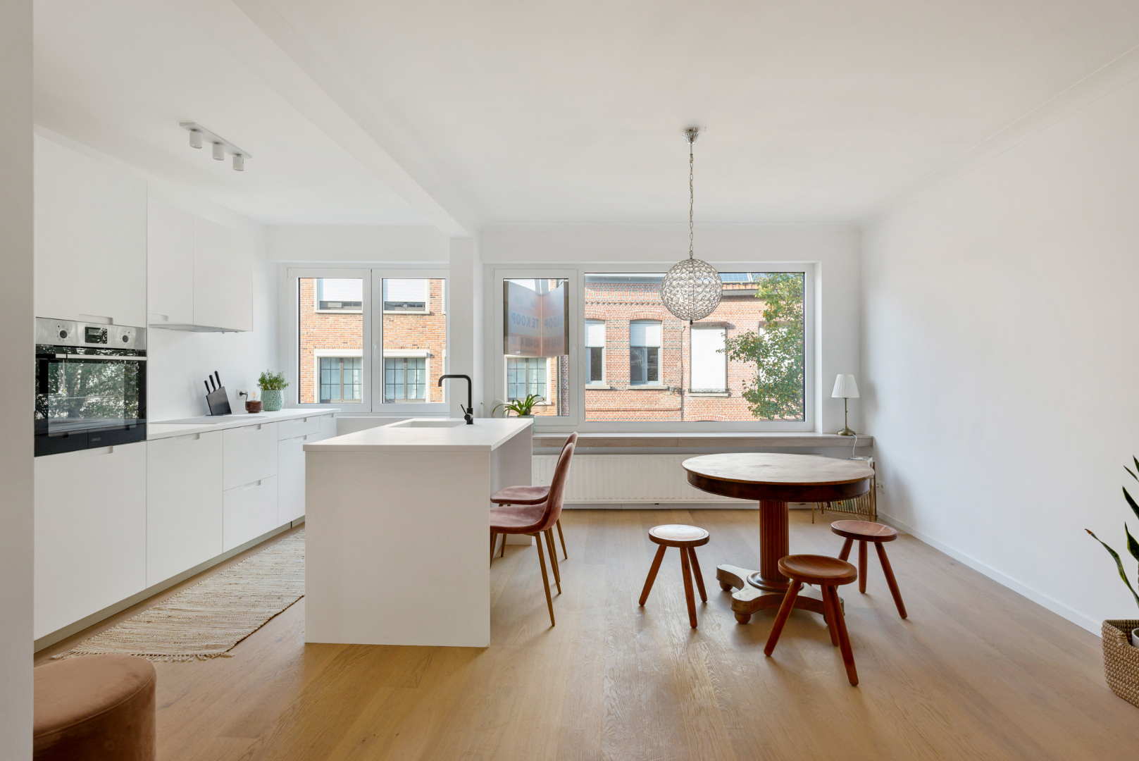 Het maakt deel uit van een kleinschalig appartementsgebouw van 5 appartementen. Een statige constructie daterend uit de jaren 70, waarvan nu de buitenschil aangepast werd aan de energienormen van 2030.