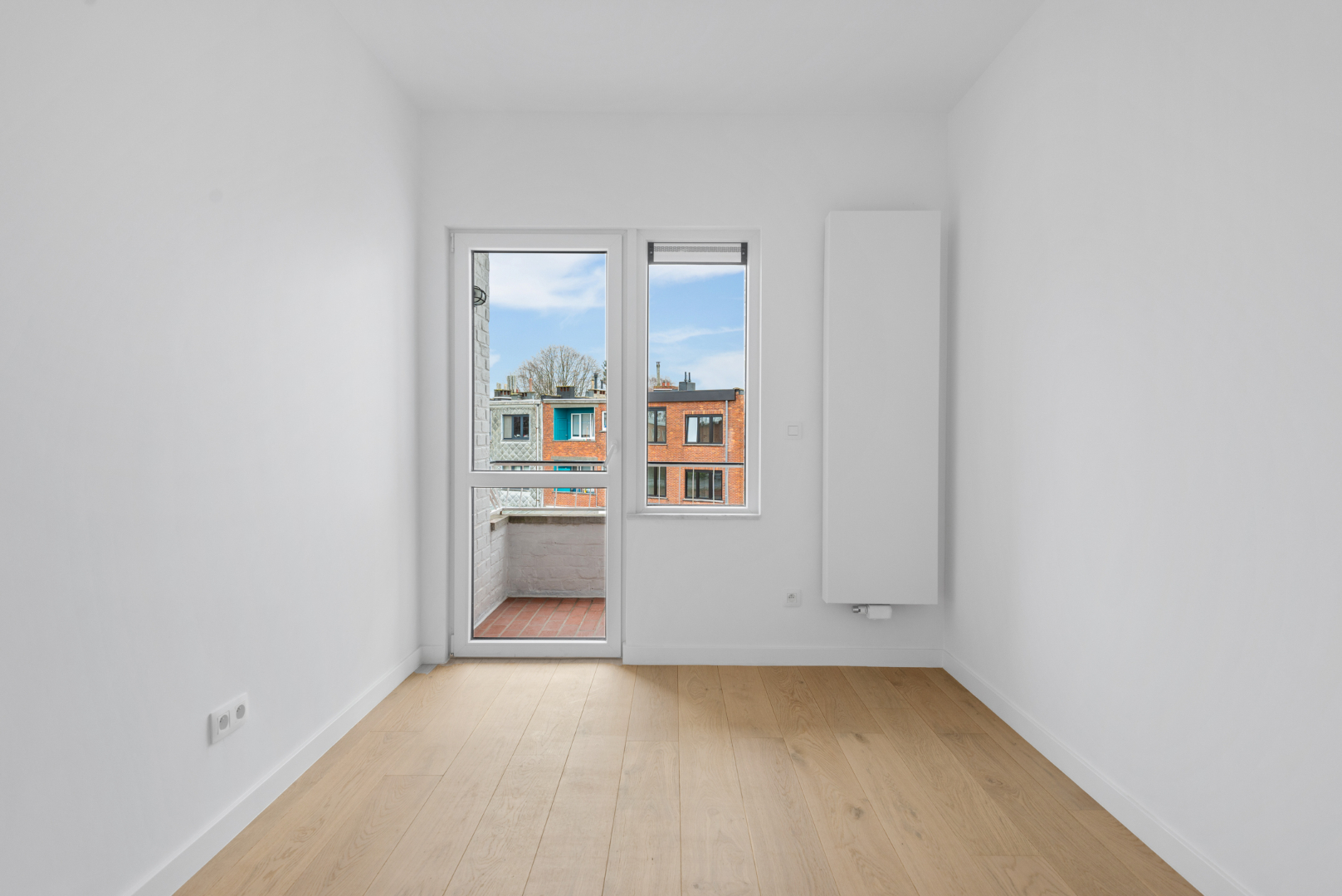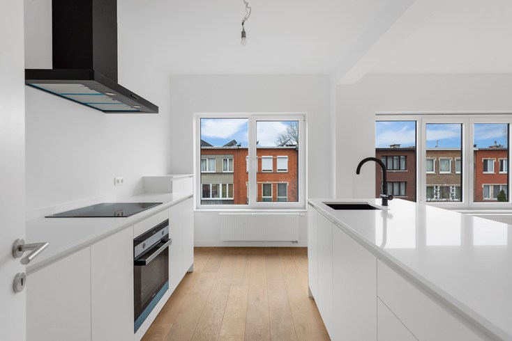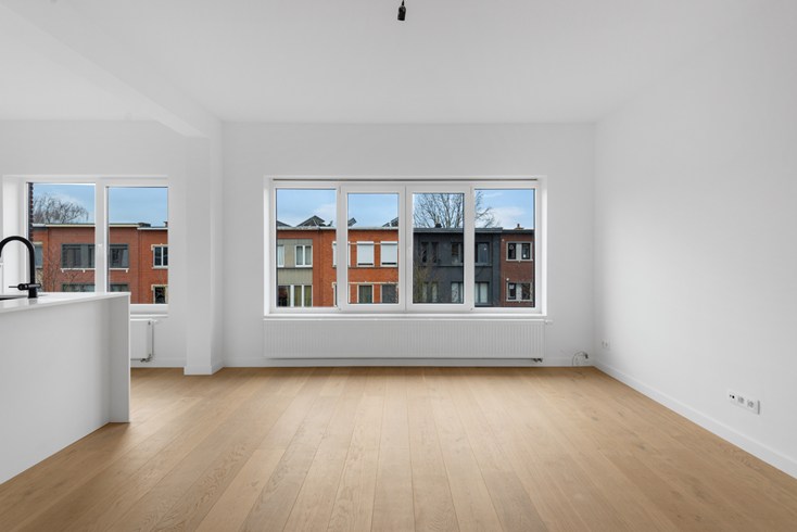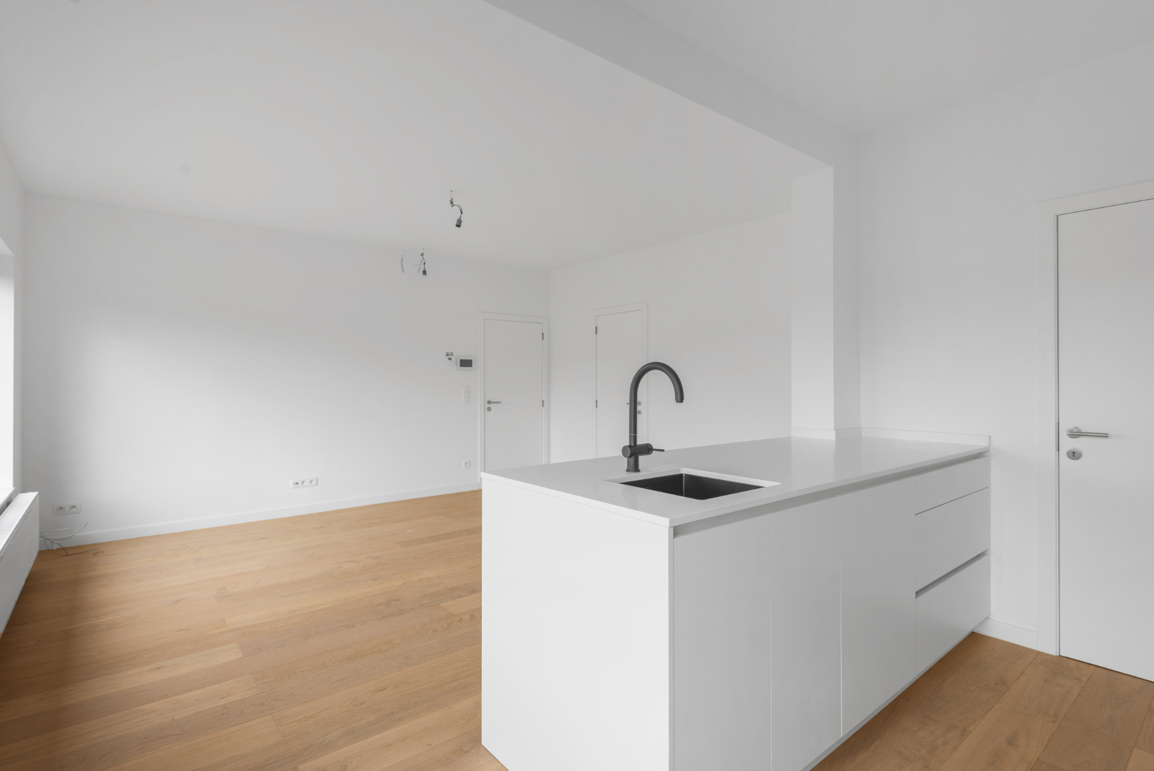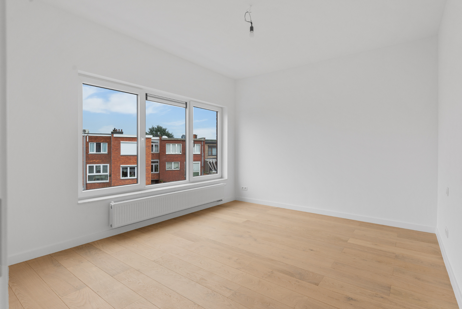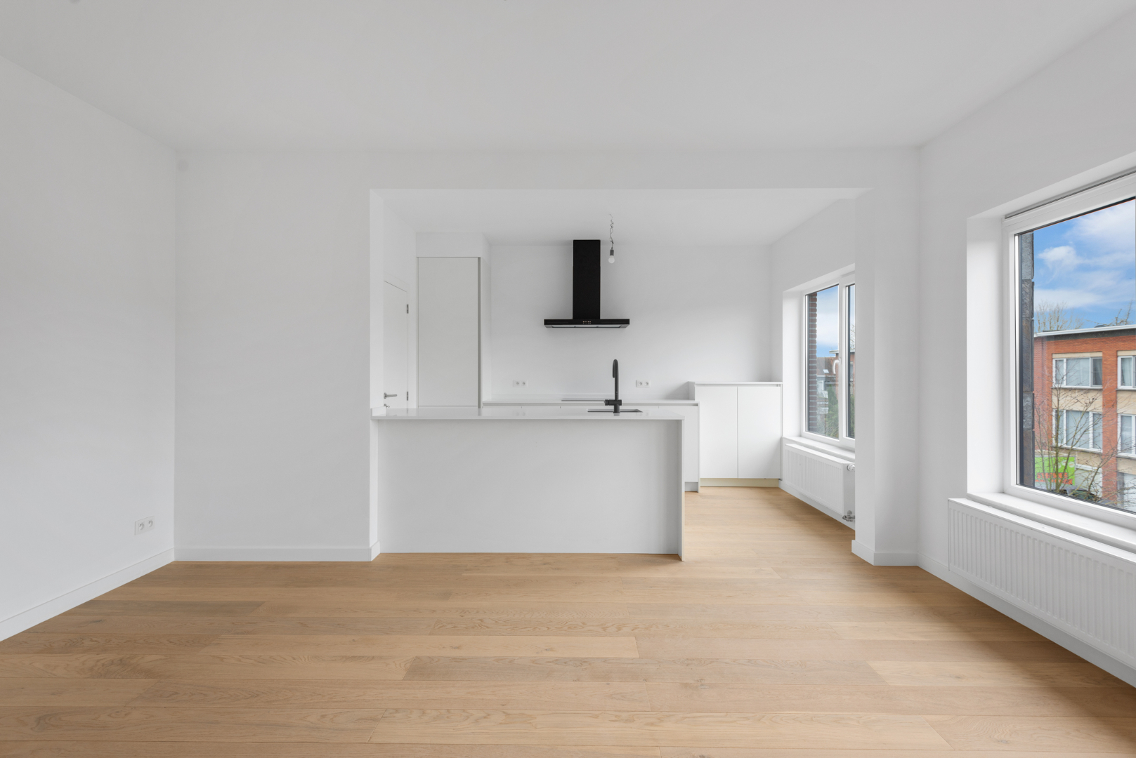 Dit volledig vernieuwd appartement op de tweede verdieping is met hoge standaard verbouwd .