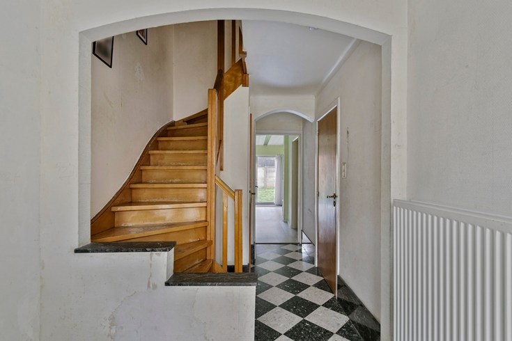 Inkomhal: Een ruime inkomhal (tegel) waar je perfect een vestiairekast kan zetten en met nog extra berging onder de trap. Verder is er hier ook nog een apart gastentoilet.
