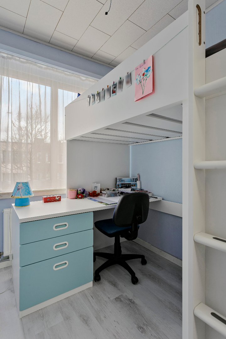 De slaapkamers: 3 slaapkamers op lichte laminaat met een goede indeling (15m² - 15m² - 7m²). Eventueel de mogelijkheid om een 4e slaapkamer in te richten op het gelijkvloers.