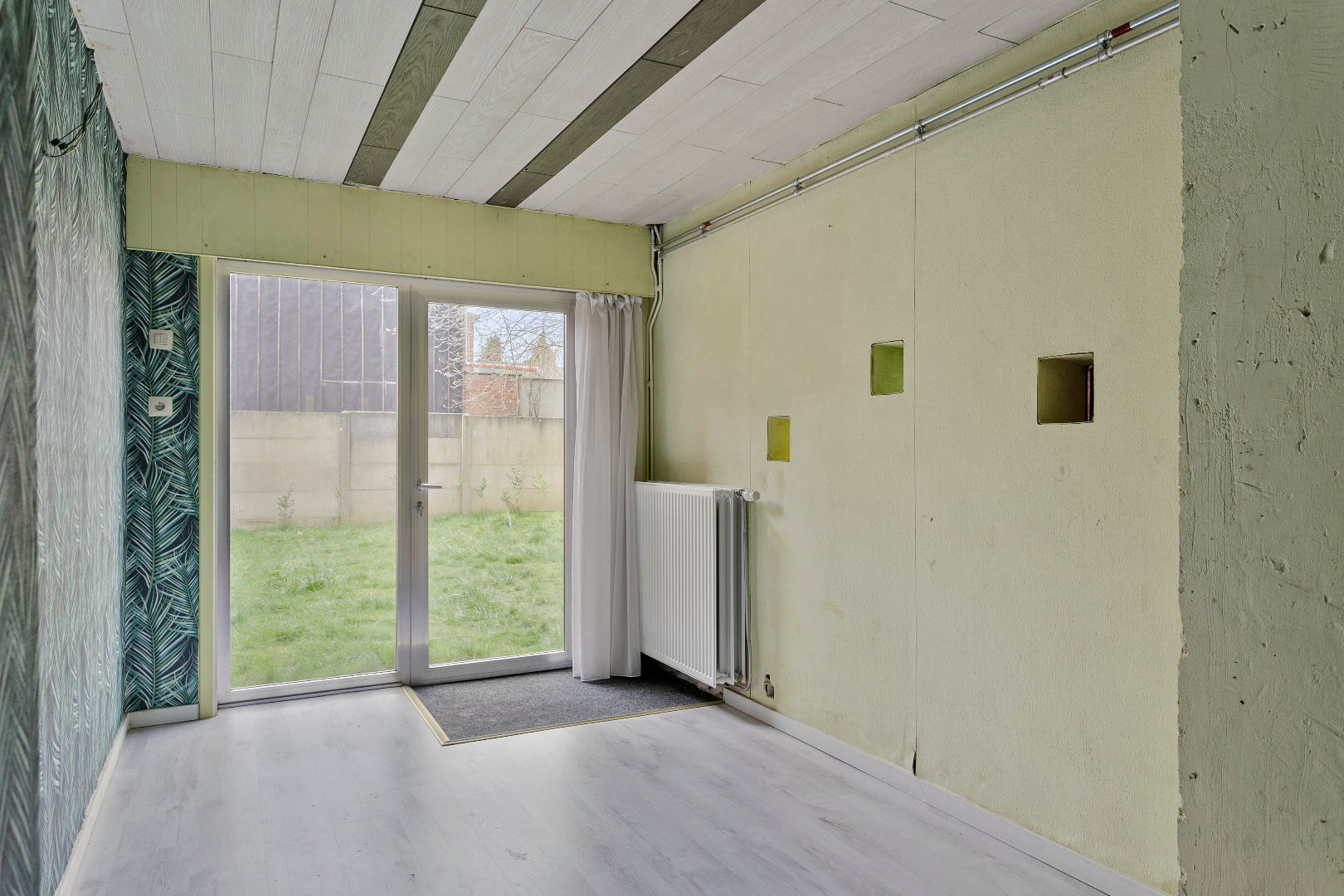 Bureelruimte: Achter de inkomhal vinden we nog een bureelruimte met veel daglicht en zicht op de tuin. Naast deze ruimte is er nog een bergplaats. Deze ruimte zou perfect omgetoverd kunnen worden in een gelijkvloerse slaapkamer met eventueel de berging als dressing, een ruimte met mogelijkheden dus.