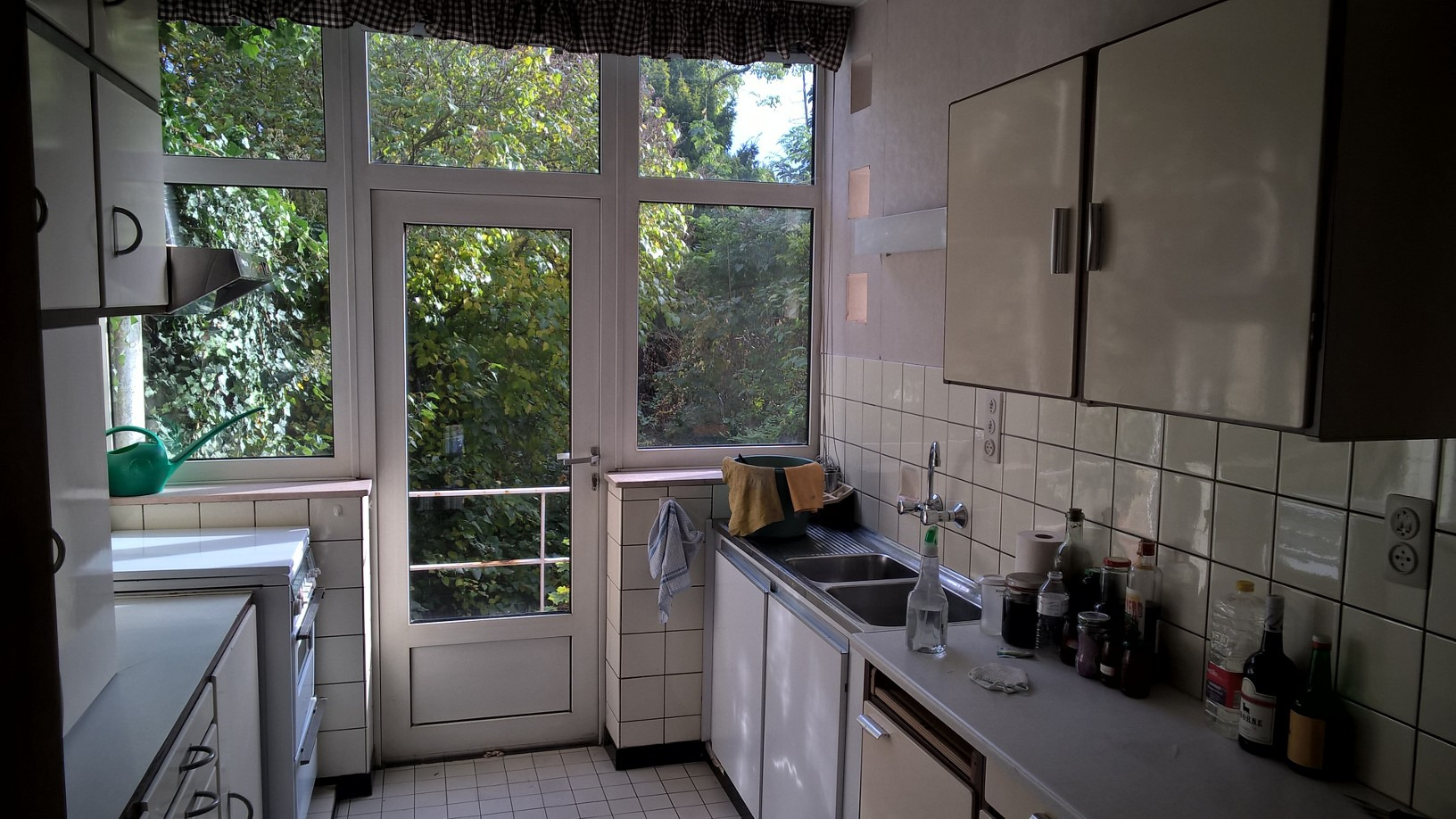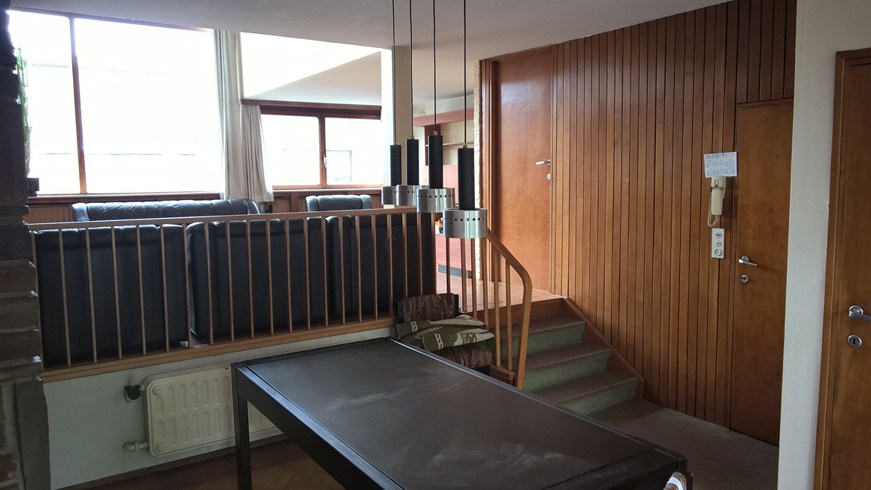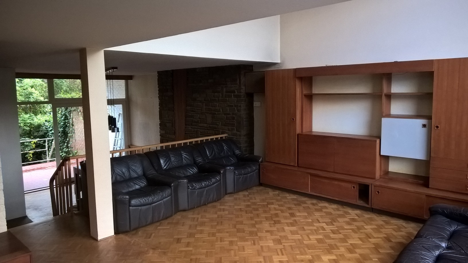 Beneden, naast de inkomhal, vinden we de garage (22 m²) en enkel kleinere ruimtes geschikt als berging. Er is een toilet op het gelijkvloers en een deur naar de grote tuin (120 m²). Op de 1ste ° treffen we grotendeels een open ruimte op twee niveaus aan, vooraan een groot glasvitrine (veel licht), een keuken ( 8,75 m²) met deur naar buiten, een overdekt terrasje zou mee in de leefruimte opgenomen kunnen worden. Op de 2de °- 3 slaapkamers ( 8,75m² - 10m² - 14,50 m²) en kleine badkamer en apart toilet ( zou samen één grotere badkamer kunnen vormen na verbouwing ). Gelegen in een rustige straat/woonwijk toch vlak bij openbaar vervoer, scholen, parken ( te Boelaarpark - Boekenberg ), de stad Antwerpen, de trein in Berchem station, op/afrit autostrade. Ben je op zoek naar een vintage woning uit 1955 met originele elementen?