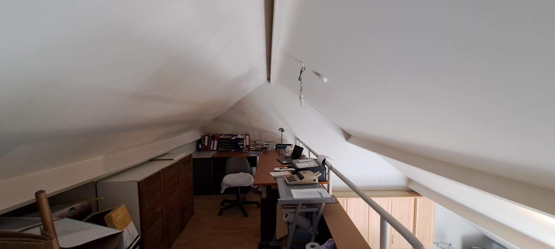 Via de ruime traphal kom je op de bovenste verdieping die volledig van jou is. De centrale hal biedt toegang tot de woonkamer, badkamer en de grootste slaapkamer. De woonkamer is een gezellige open leefruimte die toegang geeft tot de mezzanine. Hier kan je een 2e slaapkamer en een bureauruimte van maken.