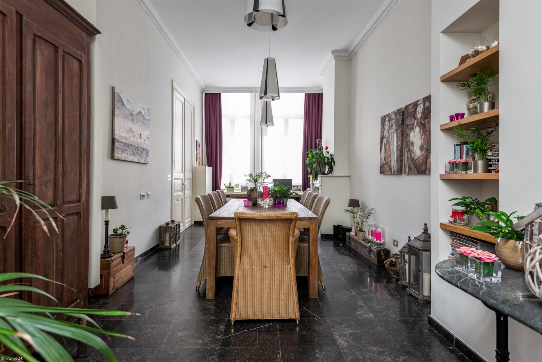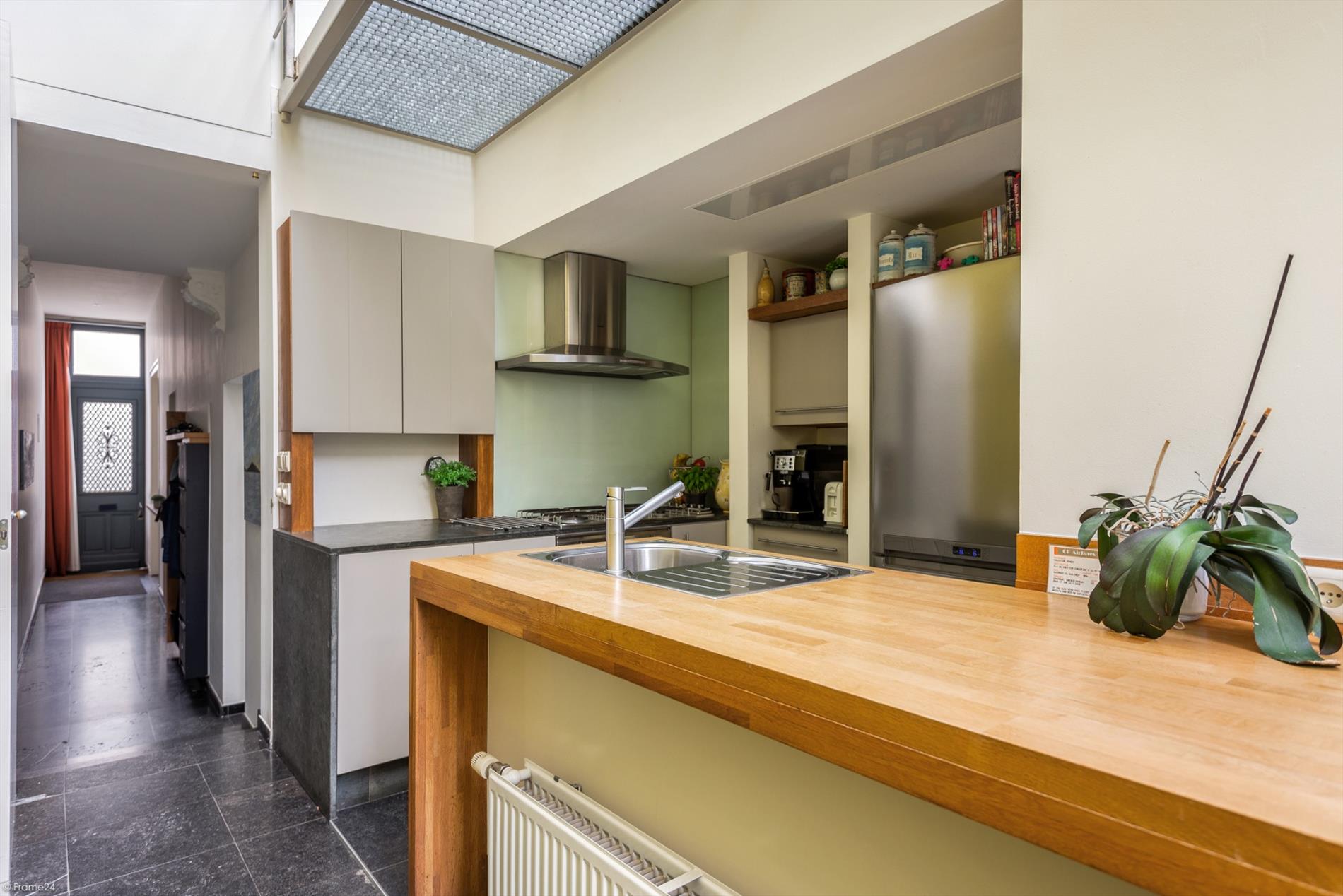 Deze prestigieuze woning gelegen op een boogscheut van de grote markt van Lier, werd in 1993 volledig gerenoveerd (inclusief alle technieken en ramen) met behoud van authentieke en originele elementen. Er is een bewoonbare opp. van ca 190m² en tuin/terras van 24 m² terras en tuin. Gelijkvloers : hal/gang die rechtstreeks toegang verschaft aan mogelijke woon- leefruimte. Achteraan heb je keuken met inbouwtoestellen die aansluiting geeft op berging, eetruimte en terras. Door het vele glas aanwezig in keuken, wordt je getrakteerd op tonnen daglicht wat wonen zeer aangenaam maakt. Kamer aan straatzijde vinden we nog een mooie ruimte die momenteel dienst doet als bureel (24m²).