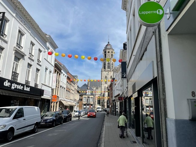 - Een brede straat met veel lichtinval, gelegen tussen de Grote markt & Sint-Gummaruskerk;