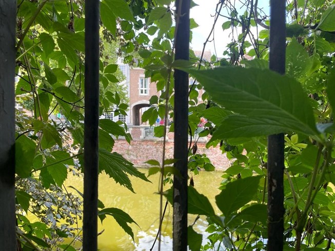 - Achteraan grenst de eigendom aan de binnenNete waar zich een poortje bevindt.