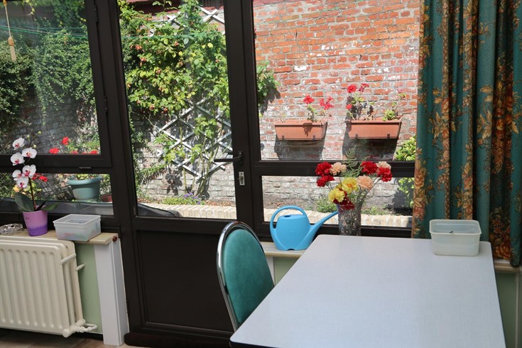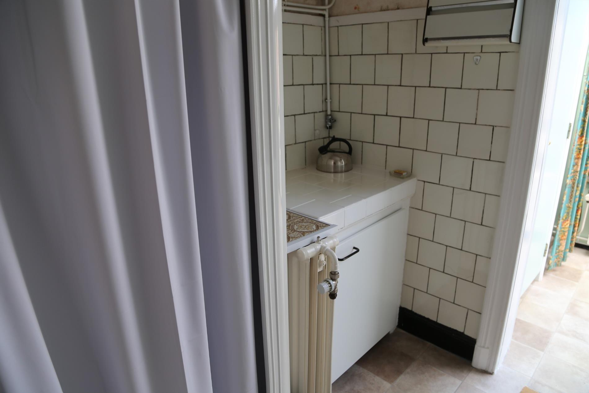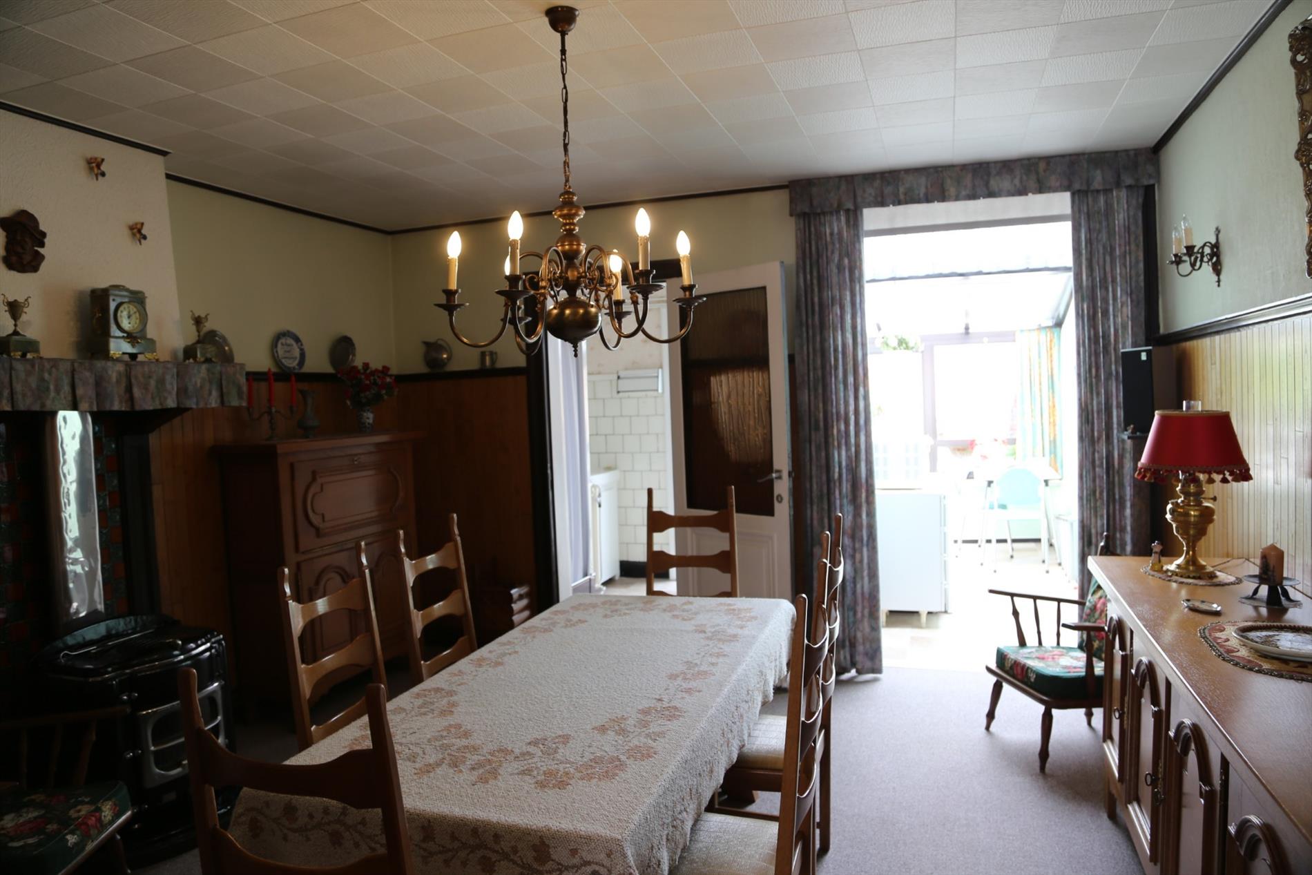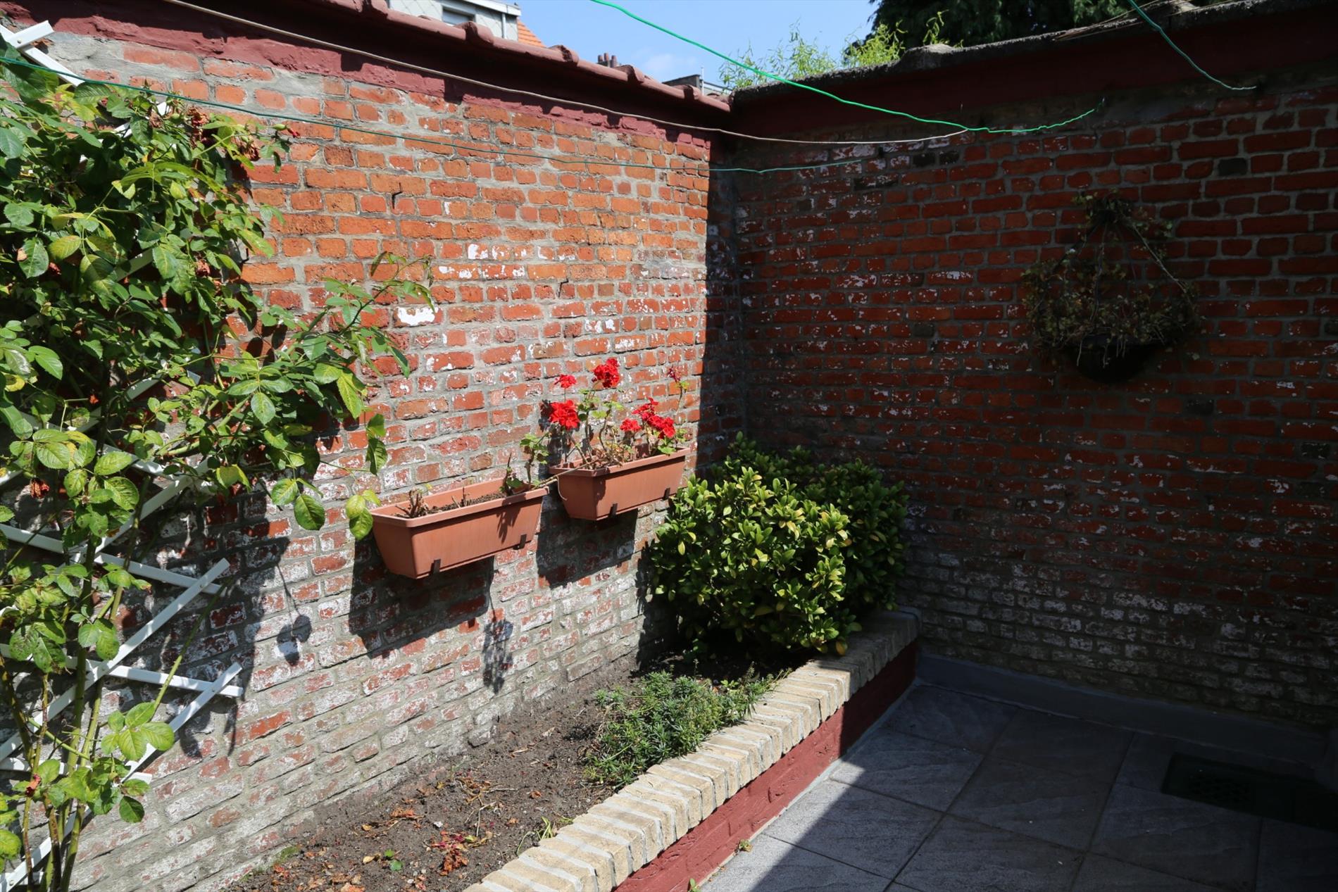 Het huis heeft een inkomhal die uitkomt in de woonkamer en doorloopt naar de eetkamer en de keuken/veranda. De keuken moet volledig naar hedendaagse normen worden omgebouwd. Het potentieel om hier een moderne en leuke ruimte van te maken is er zeker ! Achter de keuken zijn zowel een toilet als een extra bergruimte voorzien. In de veranda is er een aansluiting voor de wasmachine. De knusse stadstuin/koer kan worden vergroot indien gewenst. Zij nodigt zeker uit om buiten te zitten en te genieten.