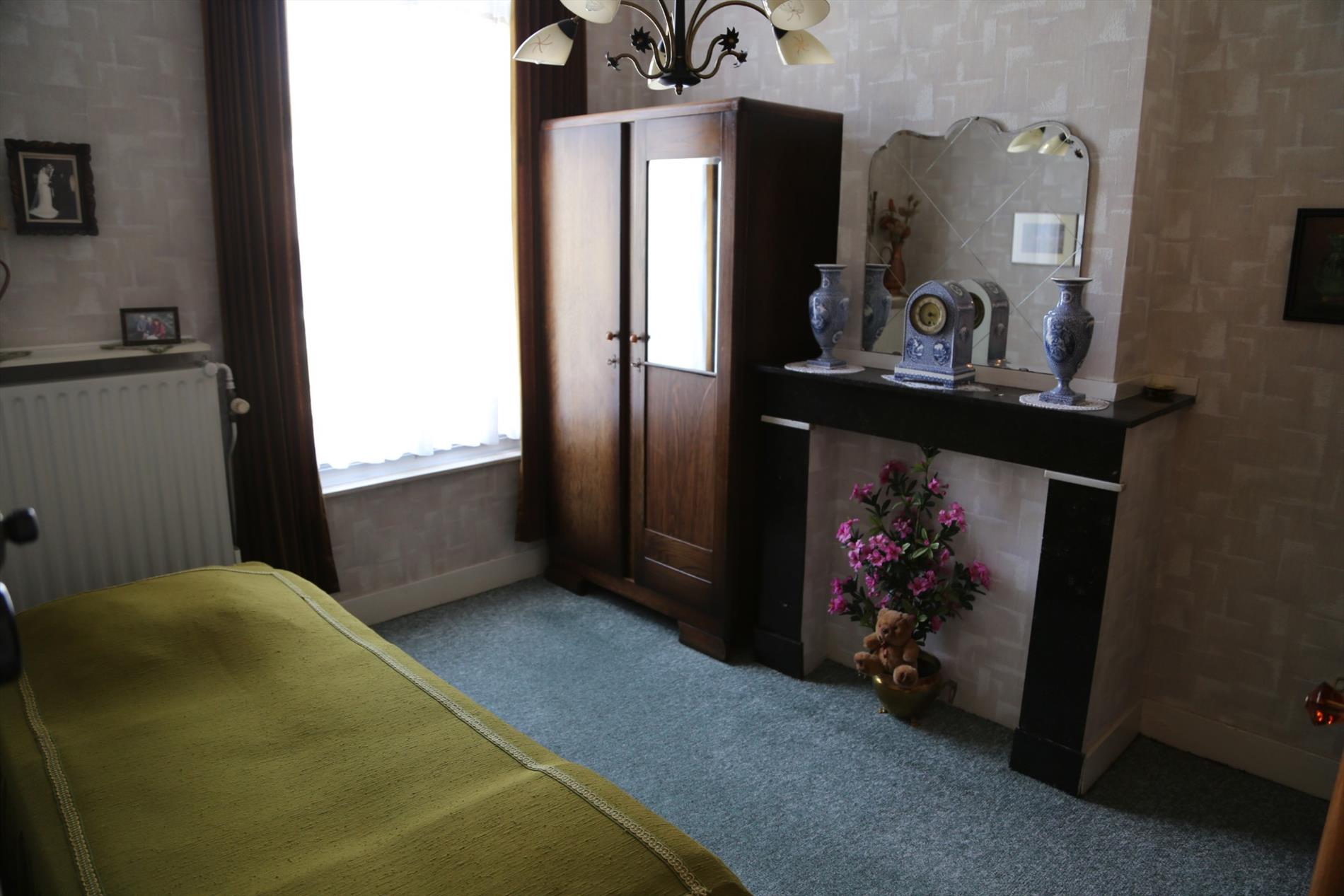 Op de eerste verdieping is er aan de voorkant een grote slaapkamer met eigen lavabo. Hierachter ligt een tweede slaapkamer waarin eventueel een comfortabele badkamer kan worden geïnstalleerd.