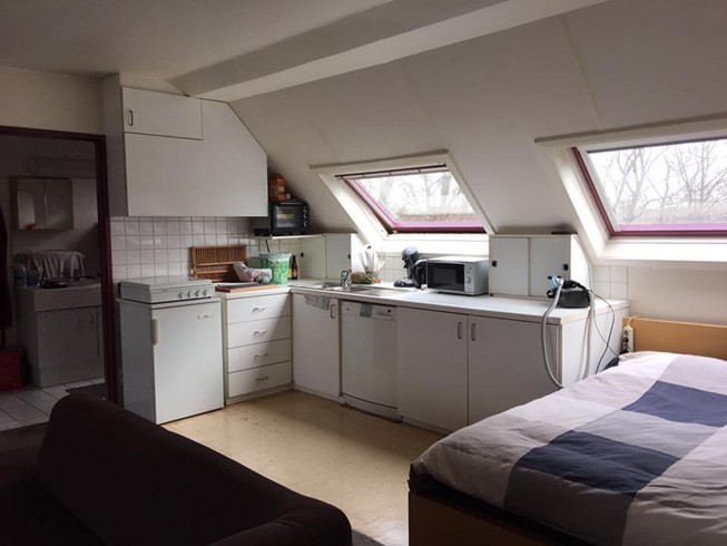 Eenvoudige en op te frissen studio op de derde verdieping gelegen aan de vesten. Op wandelafstand van grote markt.. Leefruimte met open keuken, geen aparte slaapkamer, badkamer met ligbad en lavabo. Aparte wc. Terras zuid west georienteerd met zicht op de peperbus. De studio is voorzien van een dressing op zolder onder het dak. Ideaal als investering. Klein beschrijf 684