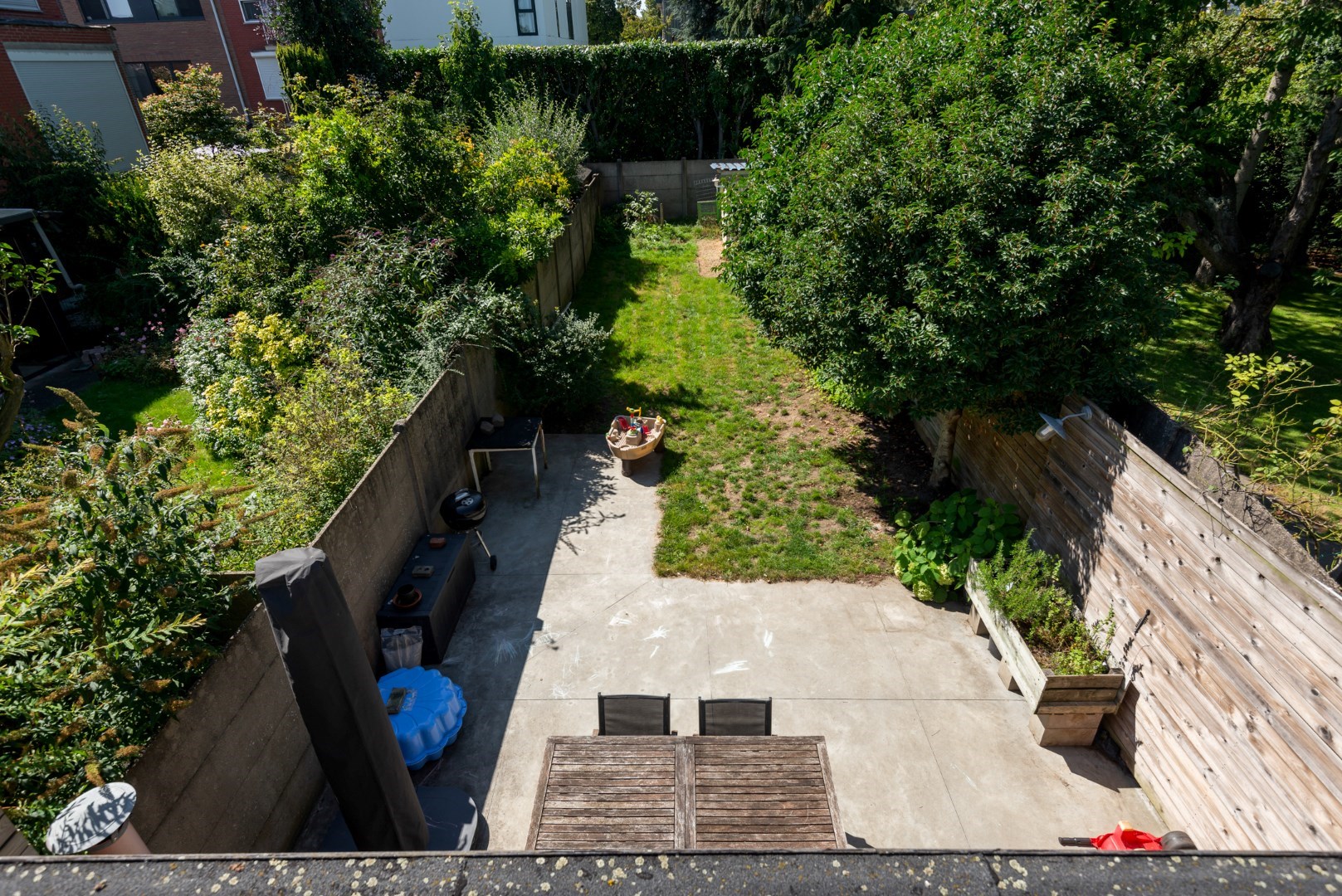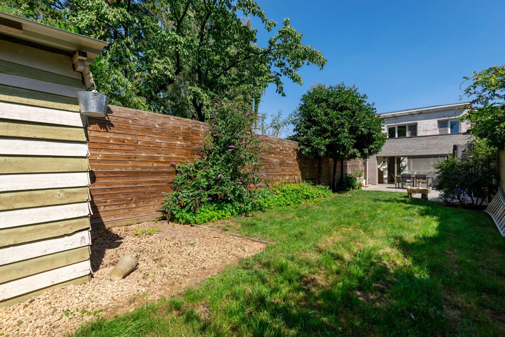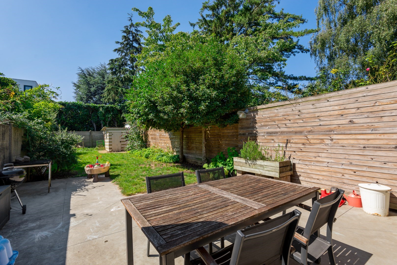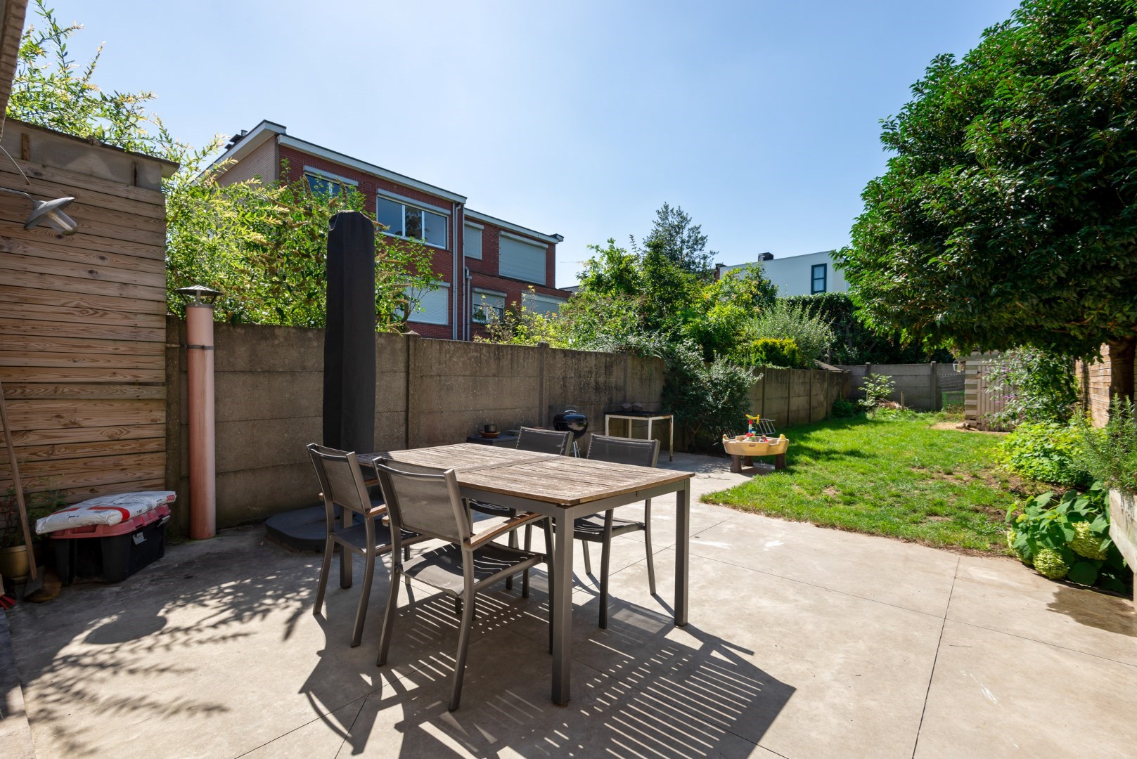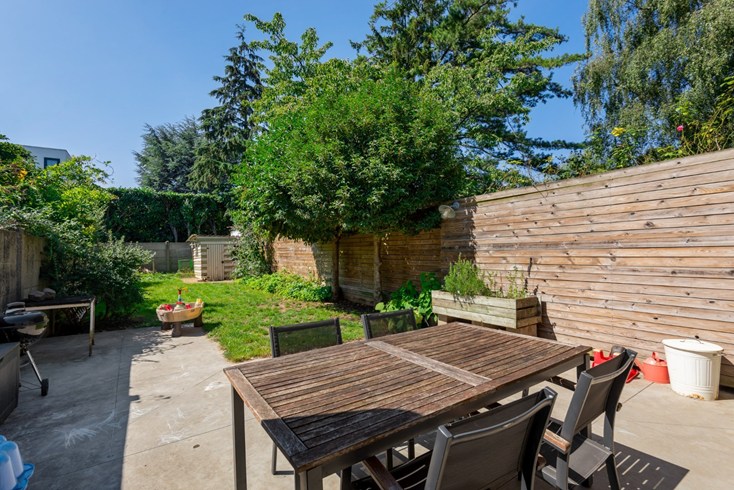 De tuin ( 120 m² ) van de woning is georiënteerd op het zuiden, waardoor je van de zon kunt genieten. Of je nu wilt ontspannen in de buitenlucht, tuinieren of buiten eten met vrienden en familie, deze tuin biedt alle mogelijkheden.