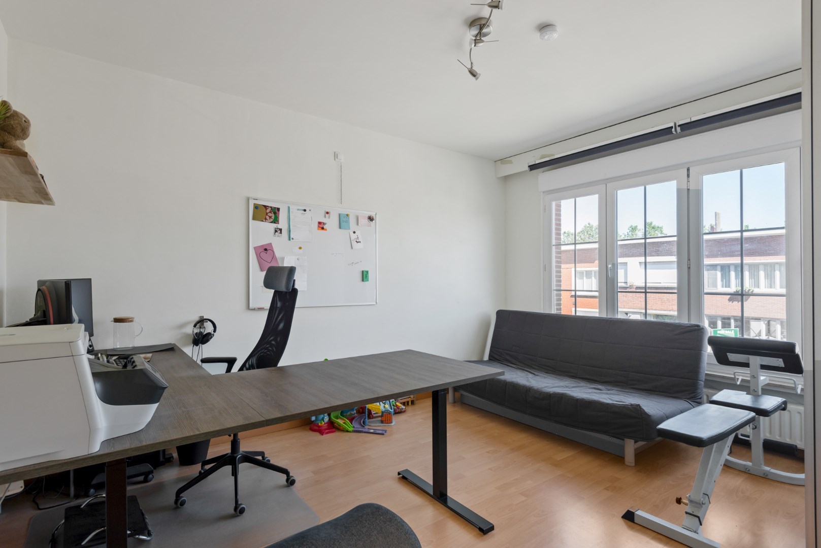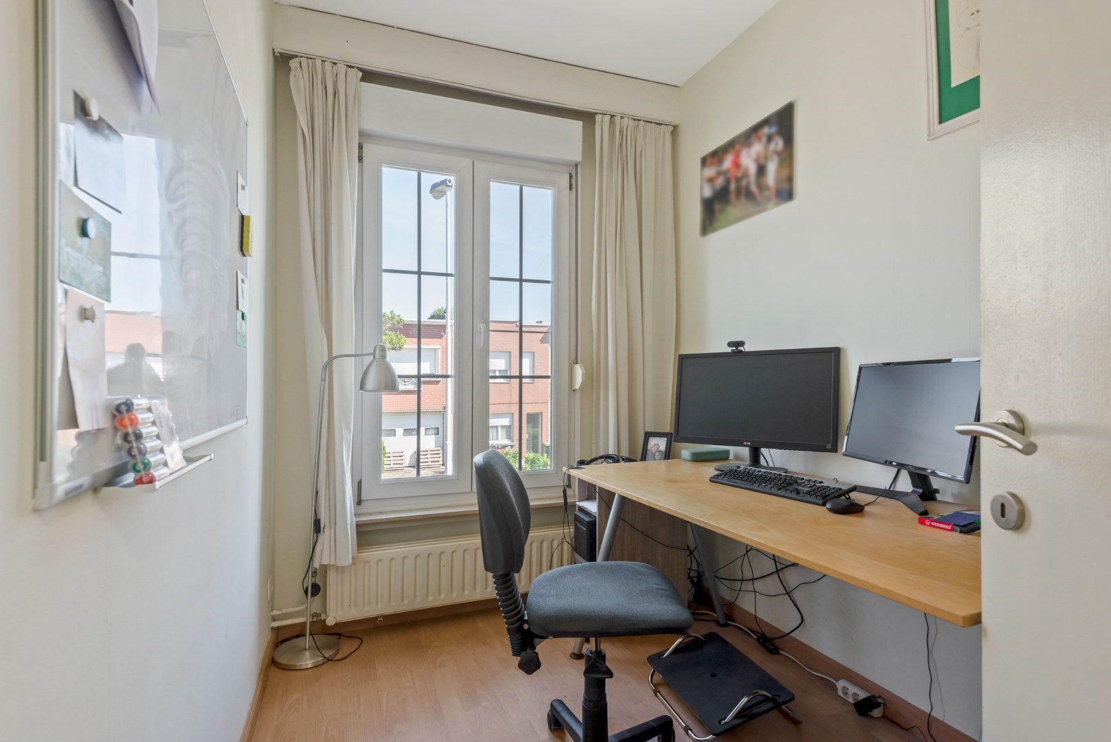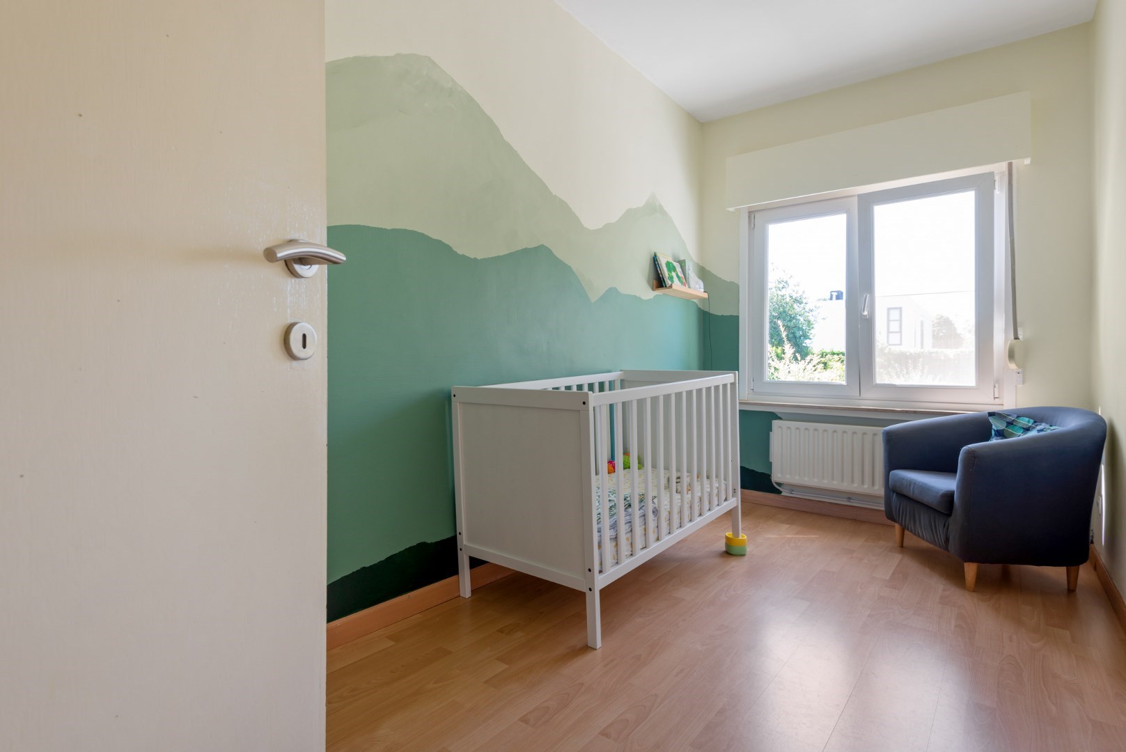De woning beschikt over drie ruime slaapkamers (16-14-11 m² ) en een babykamer/bureel (6m²).