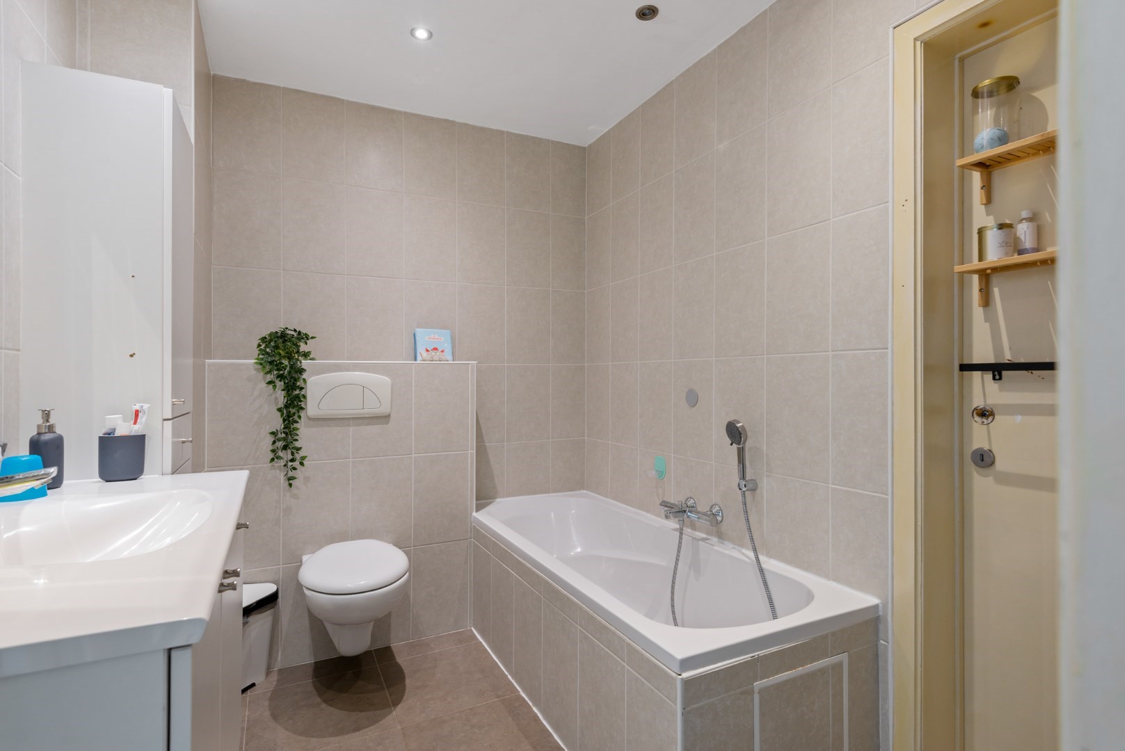 De woning beschikt over een badkamer met douche, toilet en ligbad.