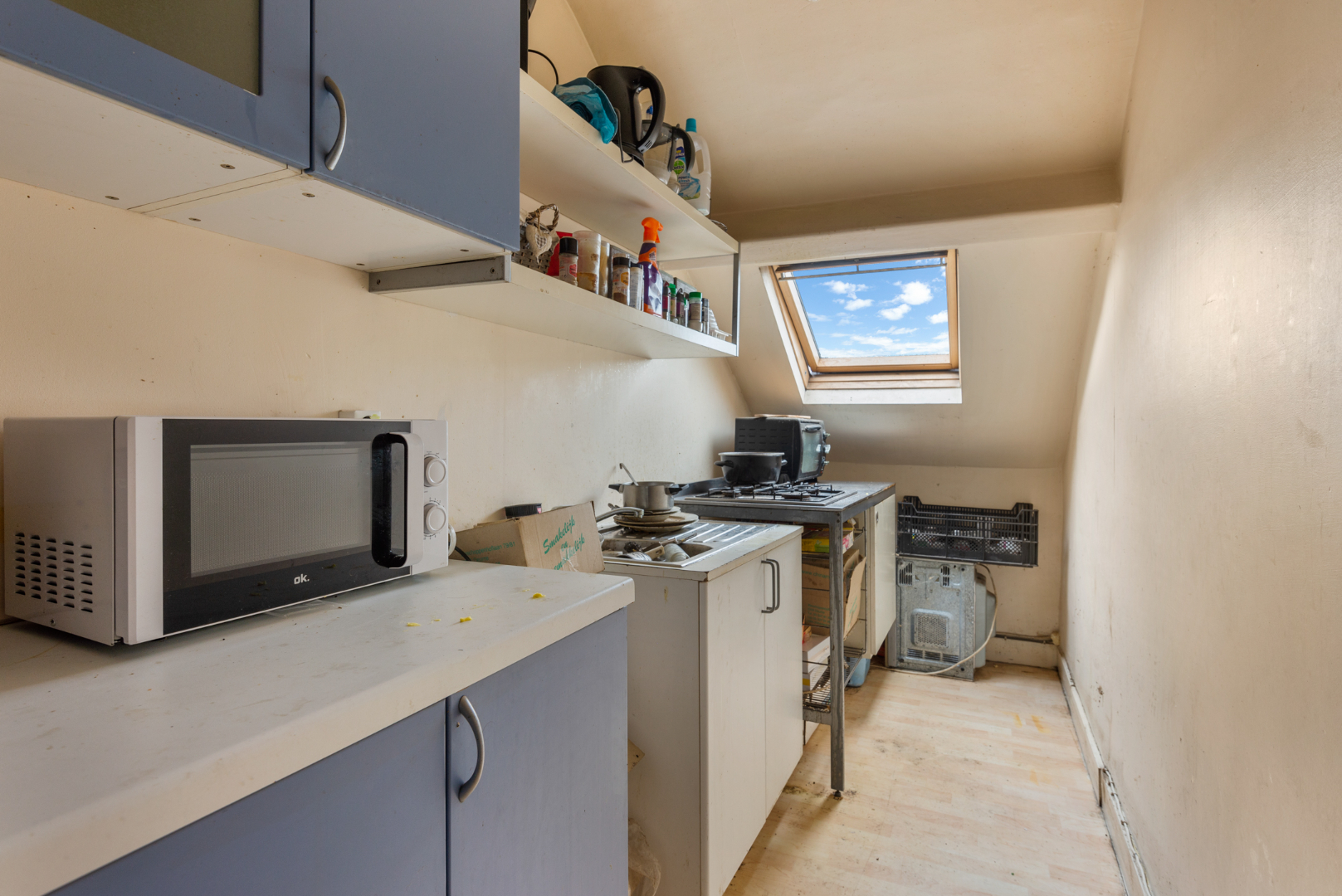 Op de tweede verdieping 2 slaapkamers ( 13-14 m² ) met een ruimte voor een derde badkamer (6 m² ).