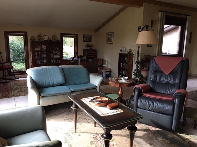 Centraal gelegen open bebouwing in houtskeletbouw bestaande uit: hall, zéér ruime zuid georiënteerd woonkamer met een groot schuifraam (38,15 m²) en haard en te moderniseren gesloten keuken (12,57 m²), 2 slaapkamers (16,70 m² - 13,62 m²) en bureauruimte (15 m²), badkamer met ligbad, wc en dubbele lavabo, (7,05 m²) , apart toilet en 2 bergingen. De woning beschikt tevens over een garage (16,96 m²), een tuin en een terras. Bouwjaar 1994. Als je buitenstapt, kan je heerlijke wandelingen maken naar de begijnenvijvers. EPC 602 kWh/m².