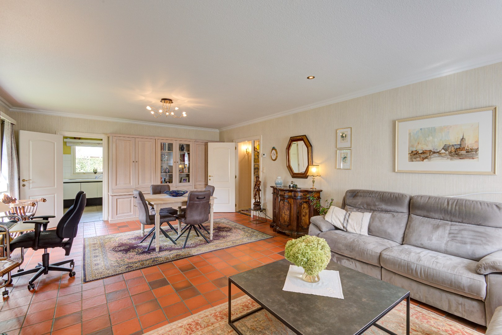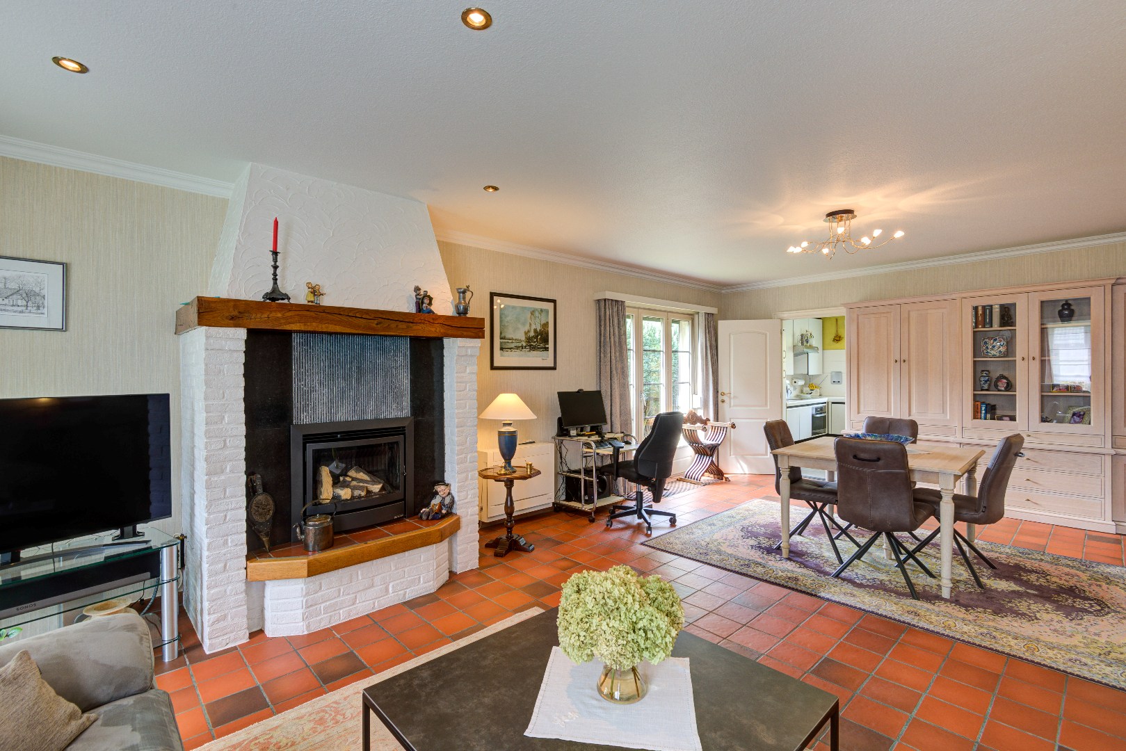 Deze ruime woning is ideaal gelegen nabij vele toegangswegen (u bent direct in alle omliggende steden) en als u huiswaarts keert komt u thuis in de rust en het groen.