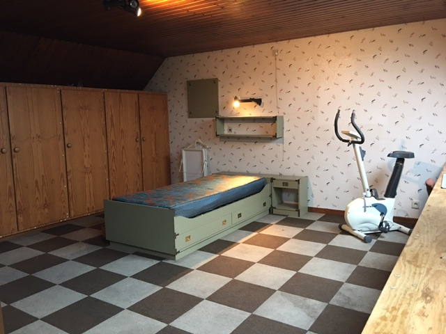 Boven op de eerste verdieping twee ruime slaapkamers en 1 kleinere. De trap naar de zolder leidt tot een volledige kamer met veluxen die ook geïsoleerd is en die zowel als derde slaapkamer kan dienen, als hobbyruimte of speelkamer. De ramen zijn reeds vernieuwd. EPC is 426 kwh/m². Deze woning heeft opfrissingswerk nodig en een nieuwe keuken en badkamer, doch geen grondige renovatie of verbouwing. Parkeren kan in de straat.