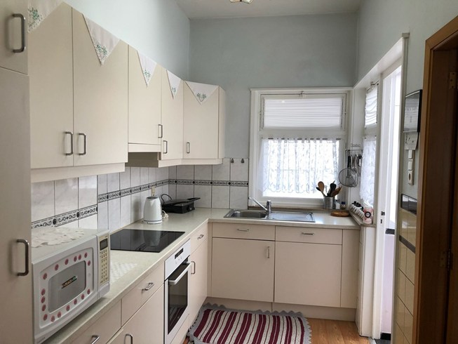 Bij het betreden van de woning kom je in de aparte inkomhal. Nadien heb je zicht op de open ruime living die aansluit bij de ingerichte keuken, vanwaar je direct toegang hebt tot de veranda en de ruime tuin. Op het 1 ste verdiep bevinden zich een badkamer met douche en WC en 3 slaapkamers. Deze woning is zeer goed in orde, en de grote kelder geeft mogelijkheden als knutsel of hobbyruimte.