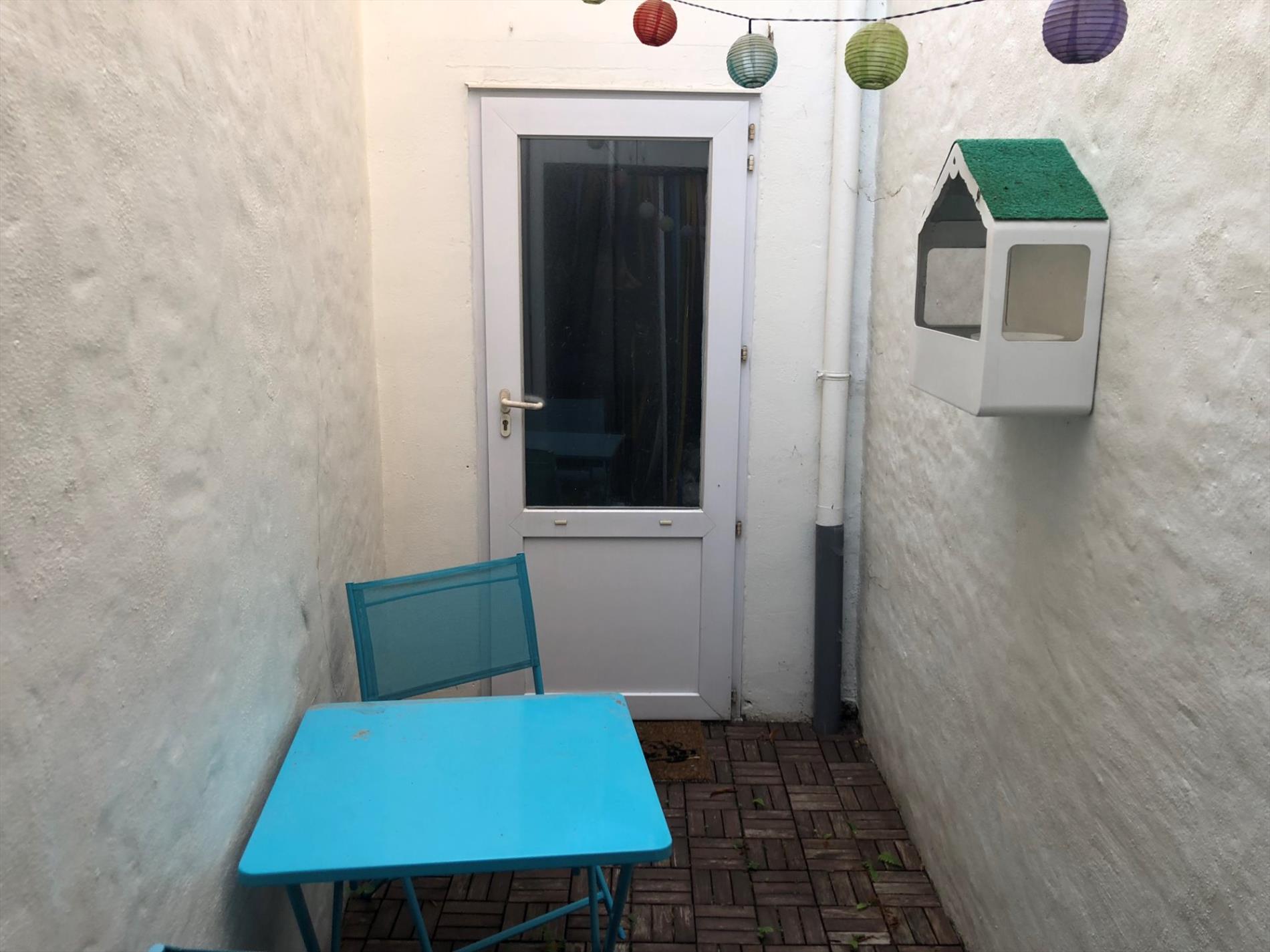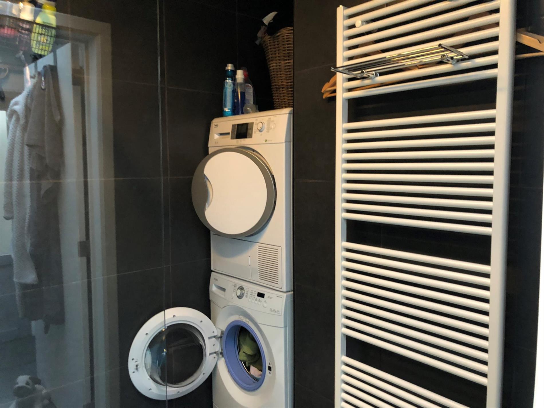 Op het gelijkvloers heb je een woon-/eetkamer met open keuken. Achter de keuken bevindt zich de badkamer die voorzien is van een inloopdouche, enkele lavabo en voorziening voor zowel wasmachine als droogkast. De bergruimte geeft toegang tot een binnenkoer. Achter de binnenkoer heb je nog plaats om enkele fietsen te stallen. Een voordeel van deze woning is dat je langs twee kanten de woning kan betreden.