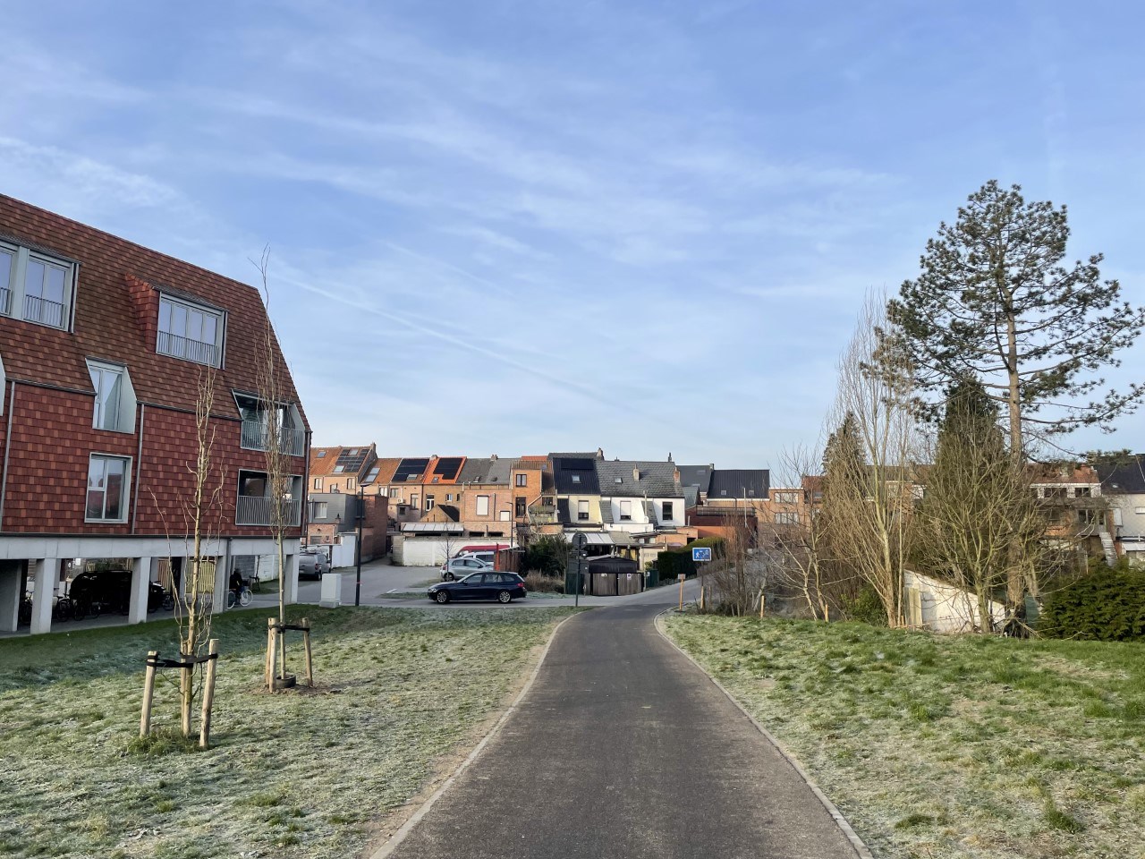 Gelijkvloerse bebouwde oppervlakte van 20mdiepte, waar het woongedeelte zich situeert. Op het 1ste verdiep badkamer, slaapkamer + aansluitende dressing. Op het 2de verdiep zijn twee slaapkamers.