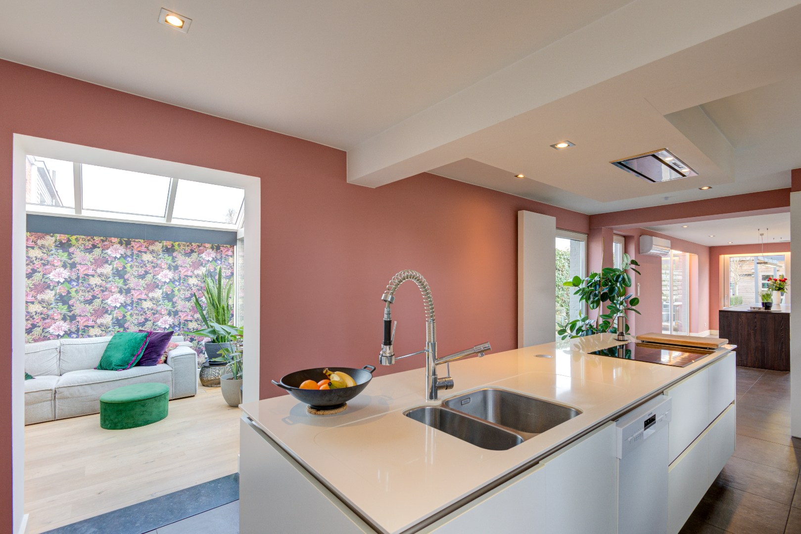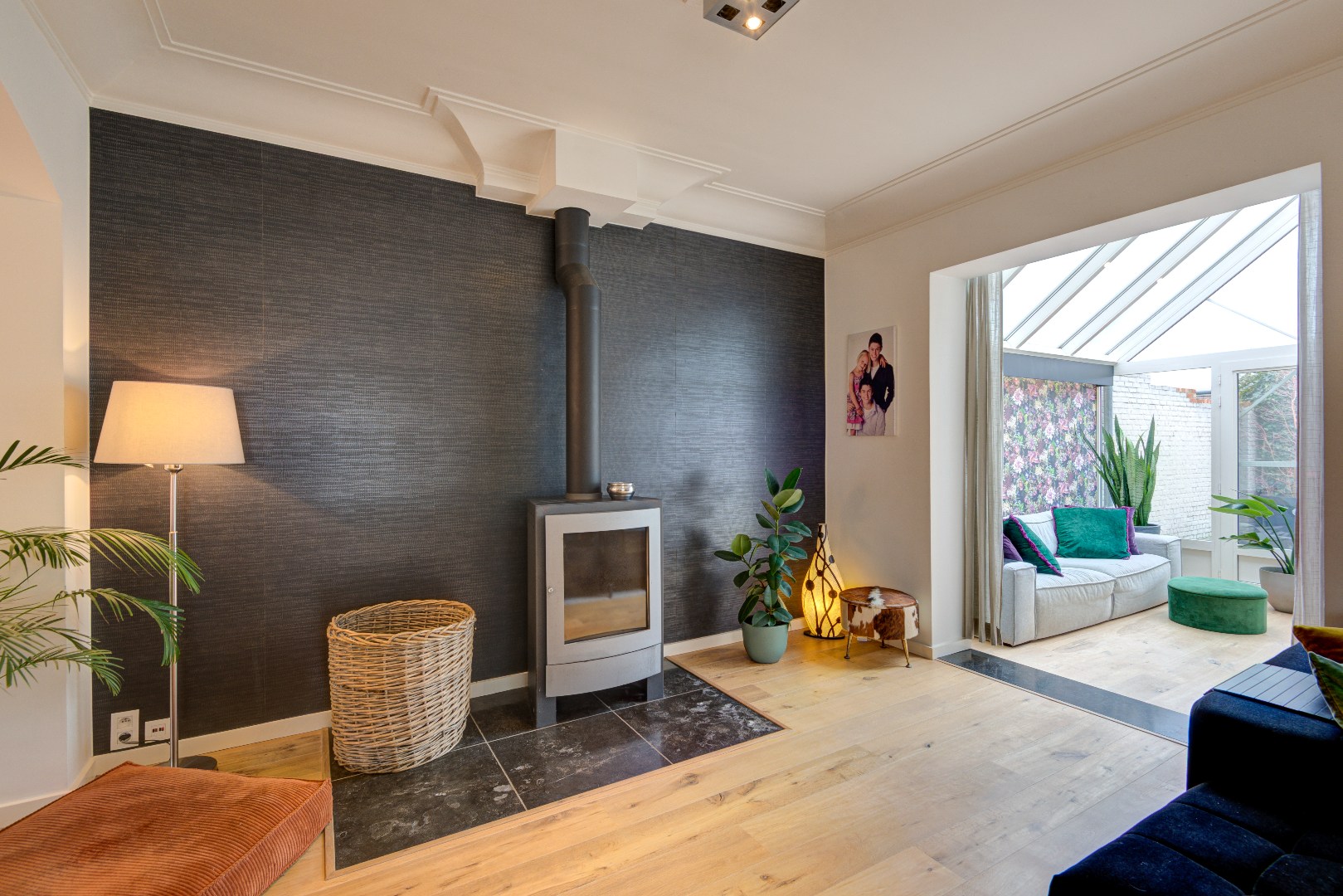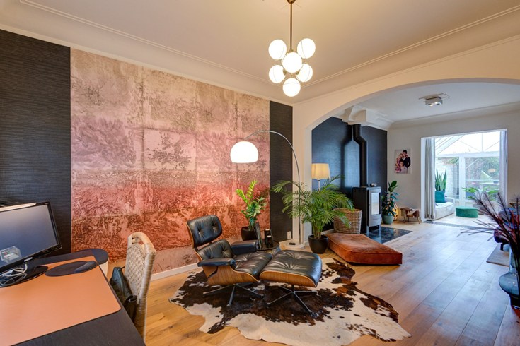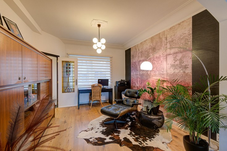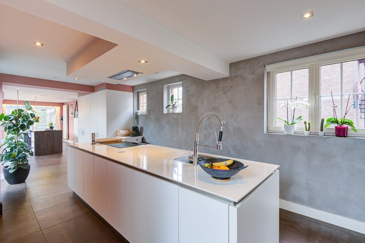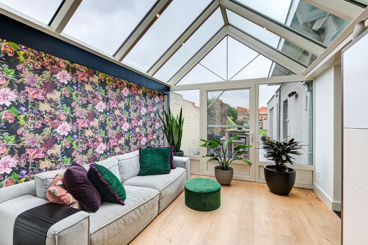 De woning is gerenoveerd vanaf 2010 tot nu, waardoor het interieur modern en up-to-date is. Alles is zeer mooi afgewerkt. De living met parketvloer is verbonden met een veranda en de aangrenzende keuken. De volledig ingerichte keuken ( met kookeiland en eettafel ) op zwarte keramische tegelvloer werd gebouwd in 2010 en kijkt, samen met de veranda, uit op de aangelegde tuin en het terras in chinese blauwe steen.