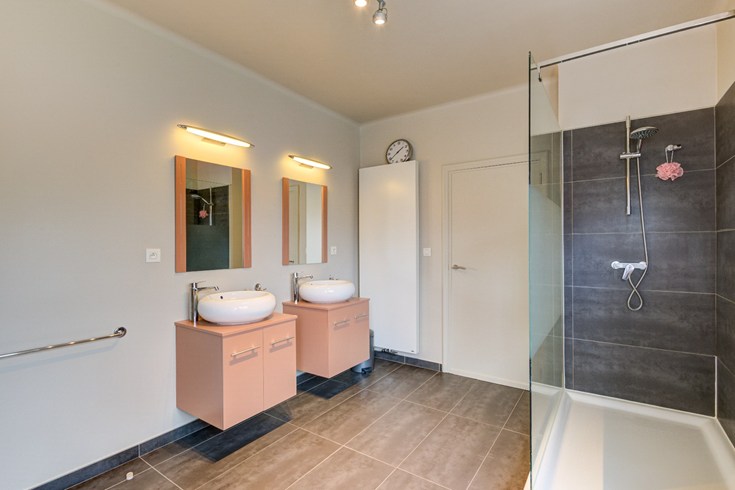 De woning heeft 1 badkamer met inloopdouche en dubbele lavabo, die ook onlangs gerenoveerd is op het eerste niveau, grenzend aan de dressing en wasruimte. Twee slaapkamers liggen op verdieping 1. Op niveau twee liggen de andere slaapkamers ( of bureau)