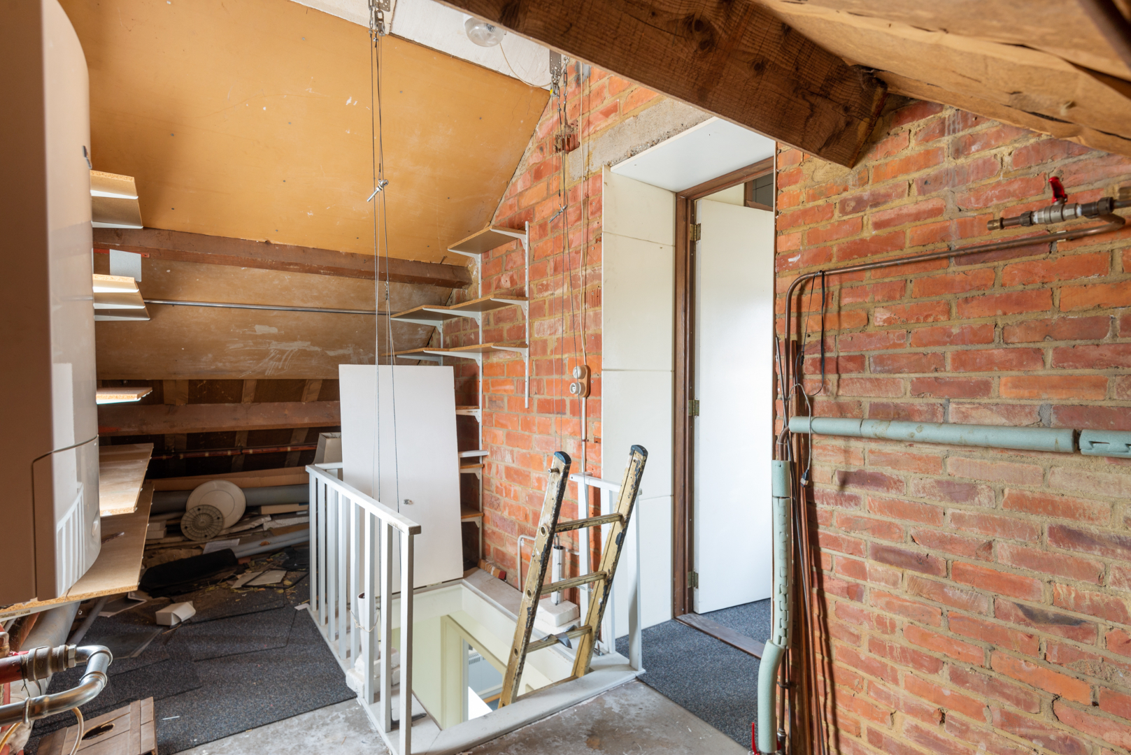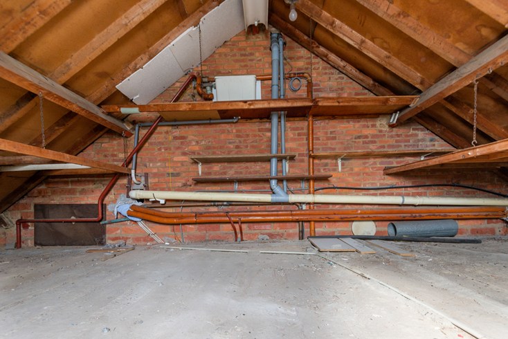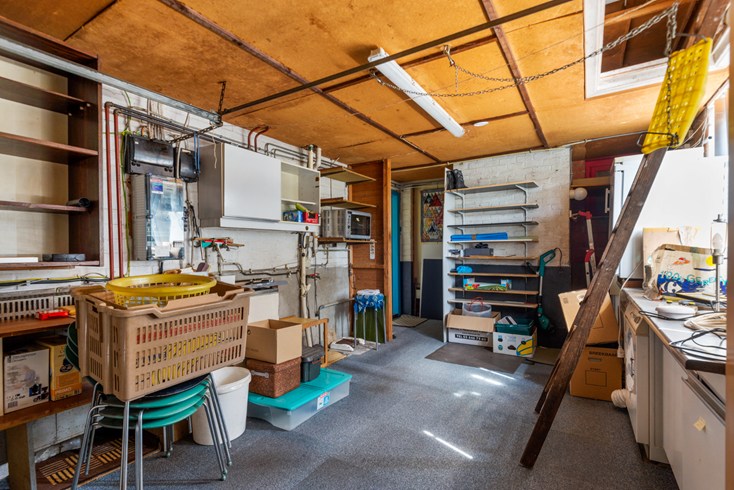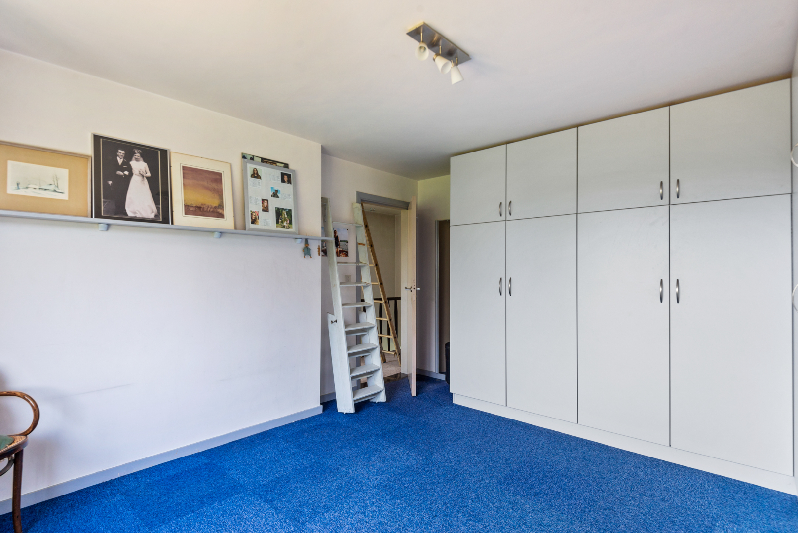 Op de eerste verdieping zijn er drie slaapkamers ( 2 normale en 1 kleine) en mits het zetten van een trap is er nog een slaapkamer en badkamer op de zolder. Boven de garage vooraan zou je nog makkelijk een slaapkamer kunnen maken. Ruime garages en berging achteraan in de tuin, alsook aangrenzend aan het huis. Altijd zon, altijd schaduw in de ruime tuin. Ideale woning voor een jong gezin. Een huis voor hobby's of mancave, of voor groene vingers. Het dak is al geïsoleerd en de dubbele muren laten ook spouwmuurisolatie toe.