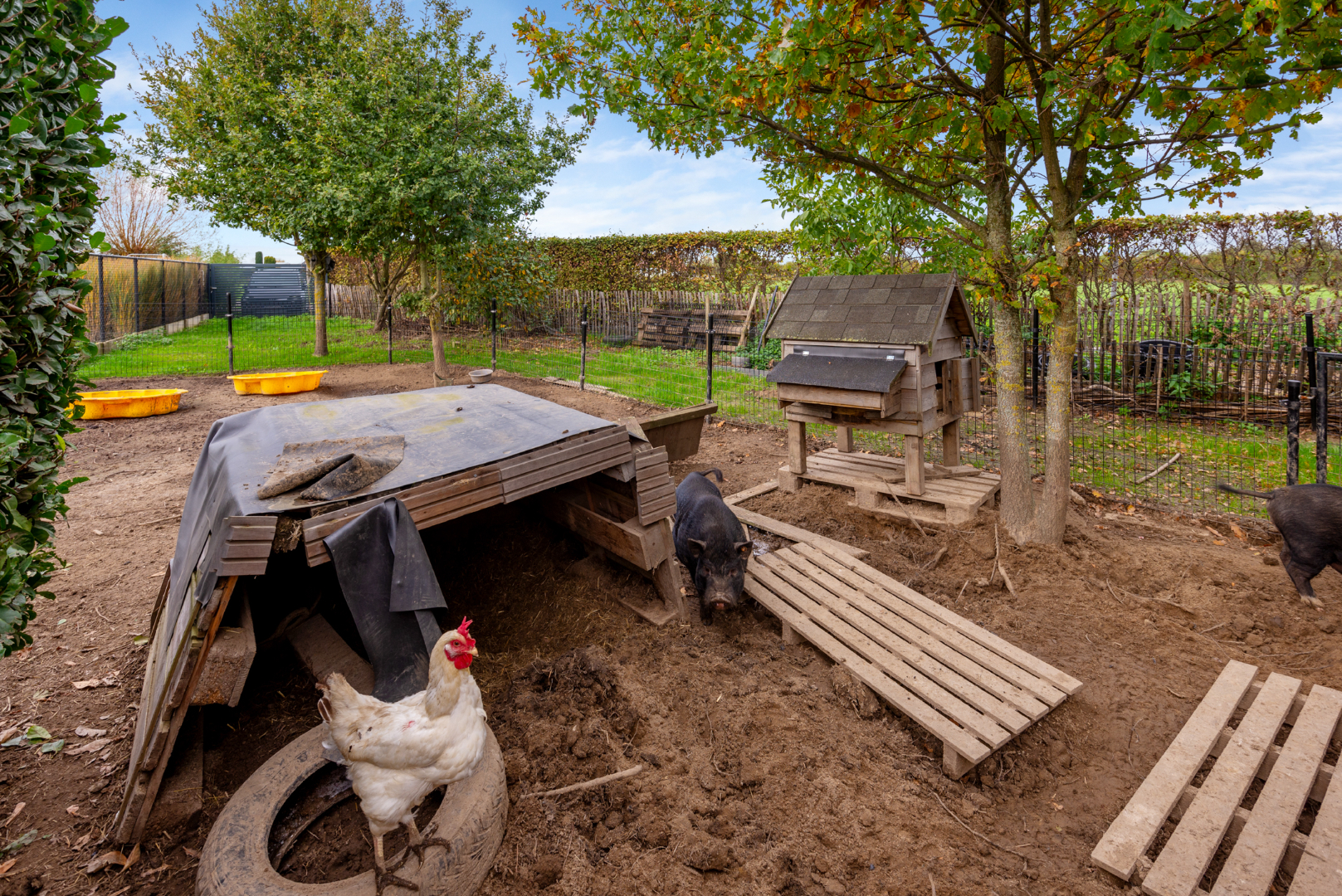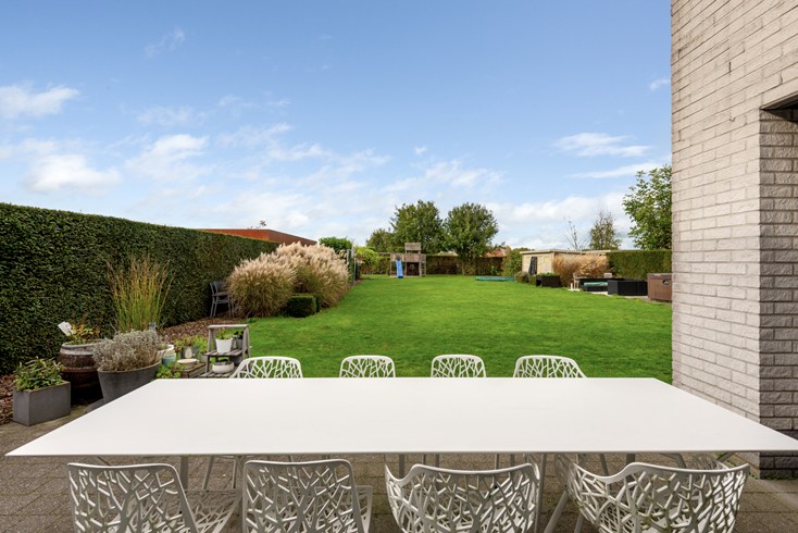 - Omheinde tuin met toegangspoort achteraan (voor het eventueel plaatsen van een aanhangwagen of dergelijke)